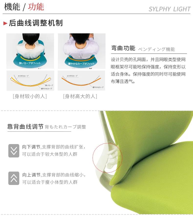 Sylphy Light系列正是Okamura针对中国市场专门推出的型号。Sylphy Light的特点在于办公椅背部的全新设计,它在椅背两侧设计了可以上下调整的手柄,当向下调整时,适应于背部体型较大的人群,当向上调整时,适用于背部体型较小的人群。实现了Sylphy Light座椅根据人体背部形态自动调节背部曲线的功能,成为座椅设计史上的重大突破之一。