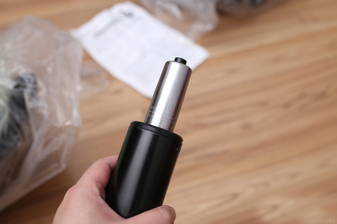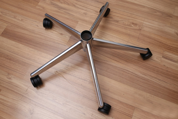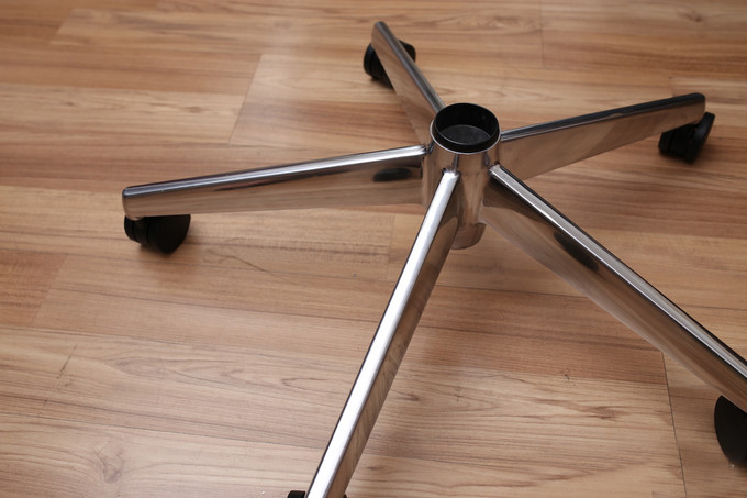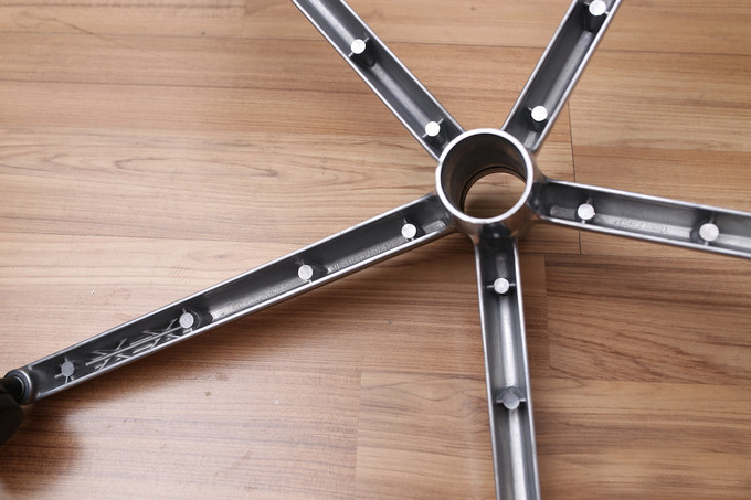 首先取出金属脚,然后安装好静音滑轮。虽然冈村的Sylphy Light系列是国产的,不过金属脚的细节依旧很好,可以用漂亮来形容。