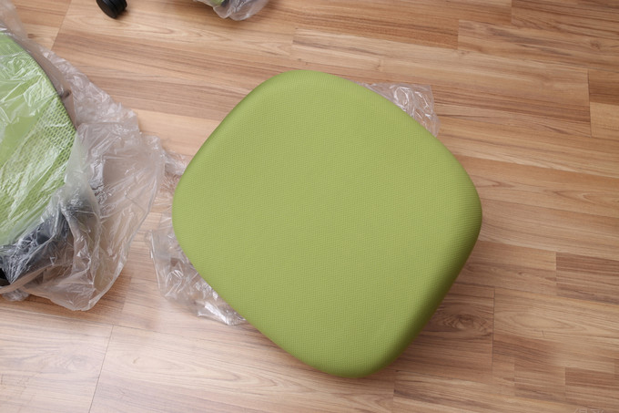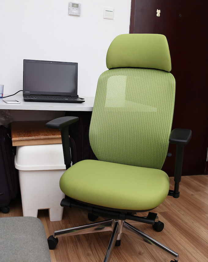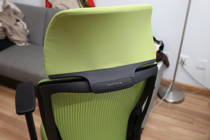 直接拿起沉重的椅子,卡到气压杆上面就可以了。我觉得没有头枕比较好看诶,而且便宜了几百,不过这次为了测试,所以买的是有头枕的版本。另外实物的话,感觉绿色真的挺好看,没买错。