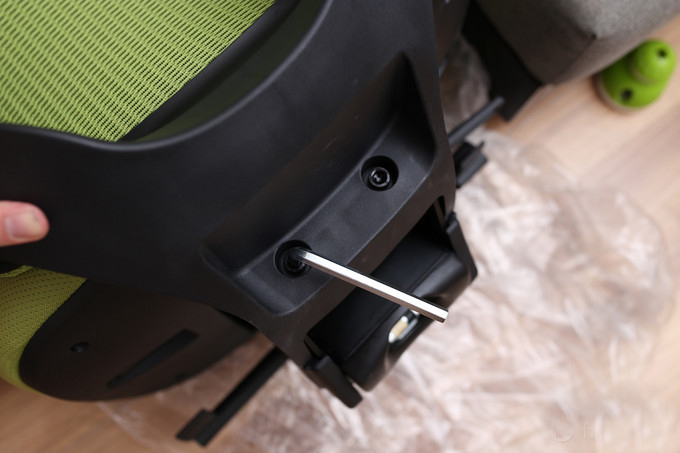 随后就是安装椅背跟扶手,跟说明书安装建议有些不同,我是直接椅背跟扶手一起安装好,等下直接座椅部分安装到金属脚即可。