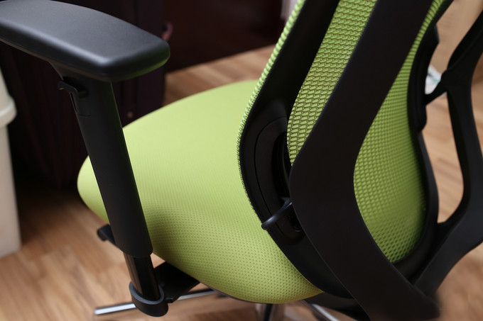 Sylphy Light椅背的高度是不能调高低的,但看似简单的椅背有个调整腰部支撑的功能调整设计。就是腰部左右两边各有一个类似调节阀的组件,可以调整这个,来调整腰部位置的托付高度,比如我个人就喜欢调整到最高,然后整个椅子腰部地方对腰的支撑,感觉像手托住腰部的感觉,非常舒服。