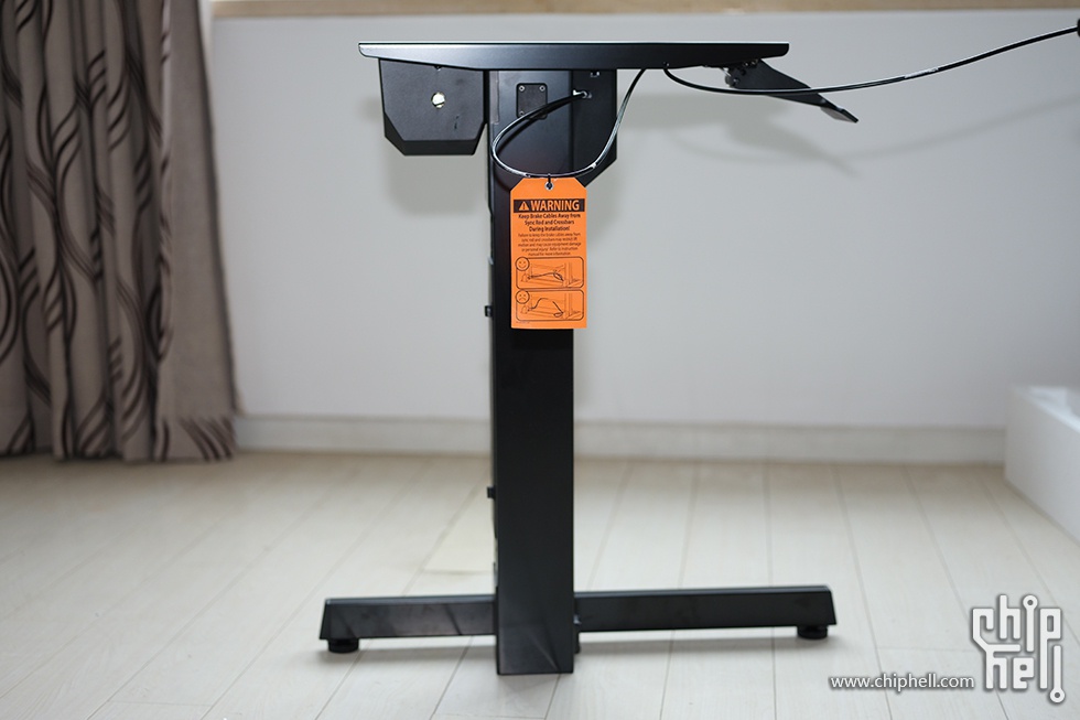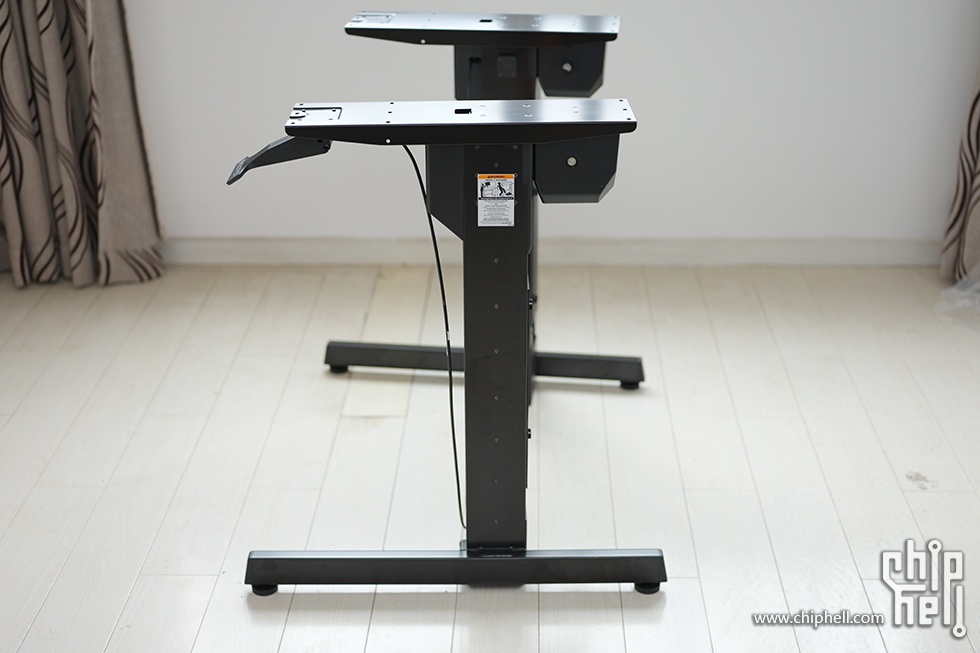 侧面贴有使用警告,升降时注意桌面物品,防止掉落
