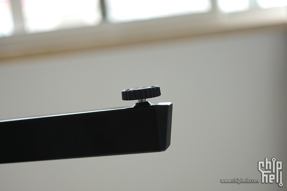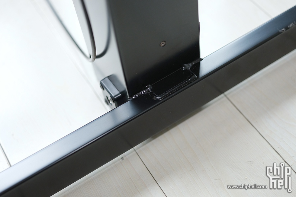 换个角度看,焊点比较均匀,还能看到升降弹簧的锁定螺丝,为了保障安全,拧开螺丝前撑脚无法升降,这也是防止在安装过程中出现意外升降的保险之一。