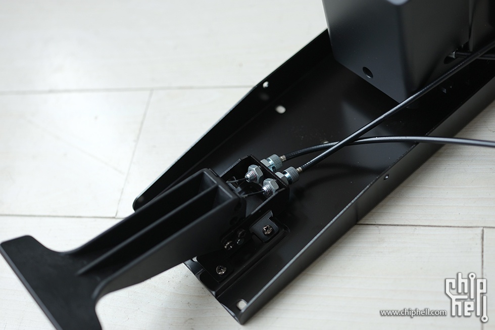 我们来看手柄的连接,手柄同时控制两根线管,对应两个撑脚里的弹簧杆。