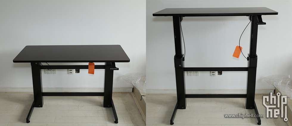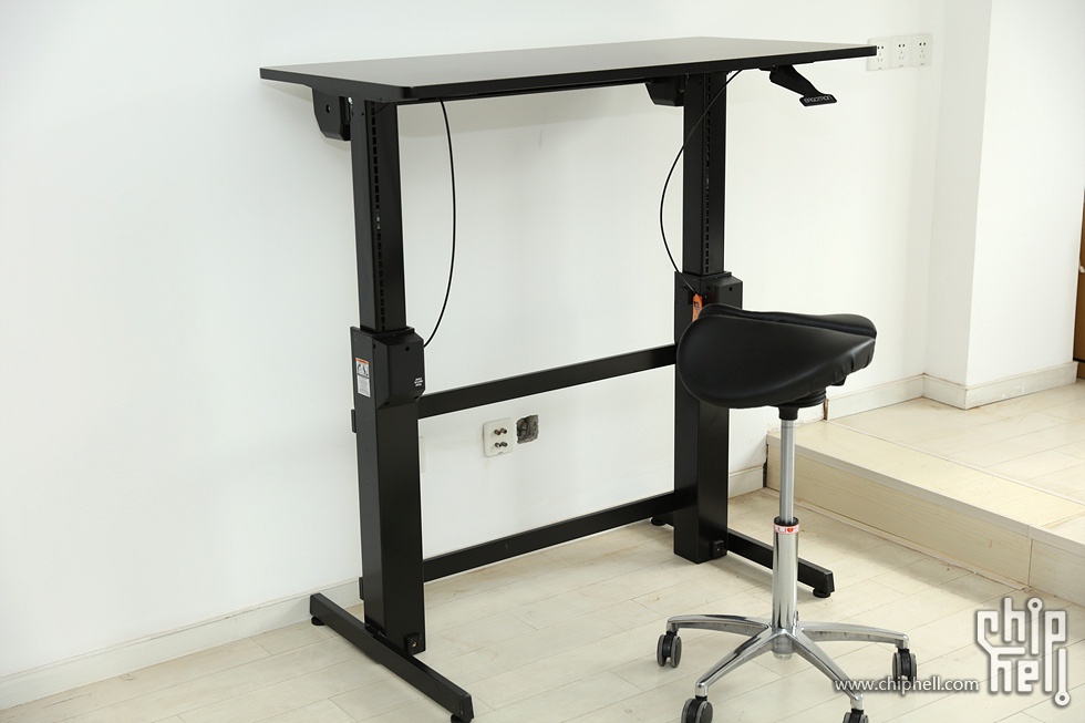 搞定后,拉起手柄桌子就可以升降了,一开始没用控制好力度,升到最高的时候是下了我一跳,下压时要话一些力气,毕竟桌子可以承受30kg的物品进行升降