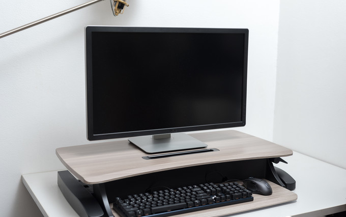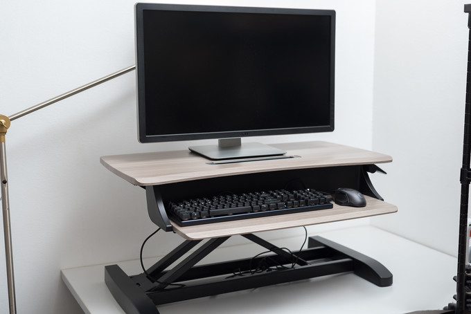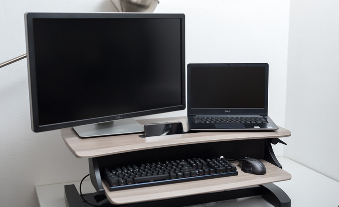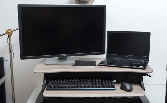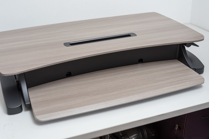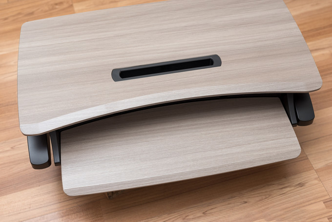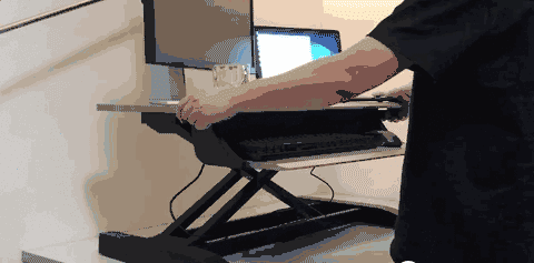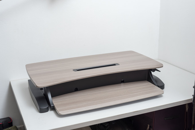 假设设备比较少的情况下(比如桌面就一台笔记本),升高操作是比较简单的,因为负重不多,下降的话起始阶段稍微按压下就可以缓慢下降;