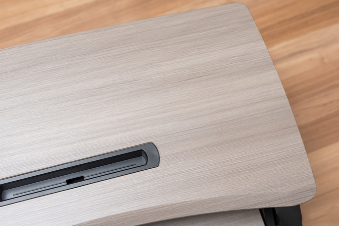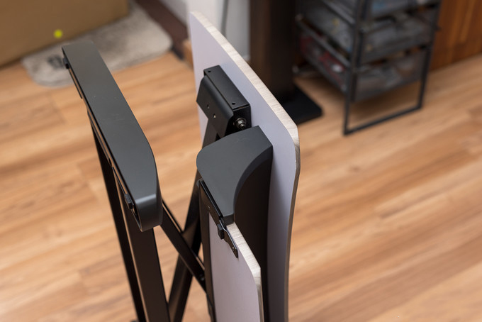 另外我也试了下摇晃桌面是否会抖动,这点也可以放心,整个桌面都不会晃动;虽然支撑力不如双轴款,不过在移动过程中哪怕你突然不辅助用力,升降桌也不会突然下沉或者跳高。