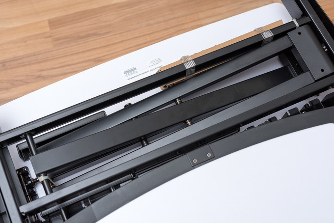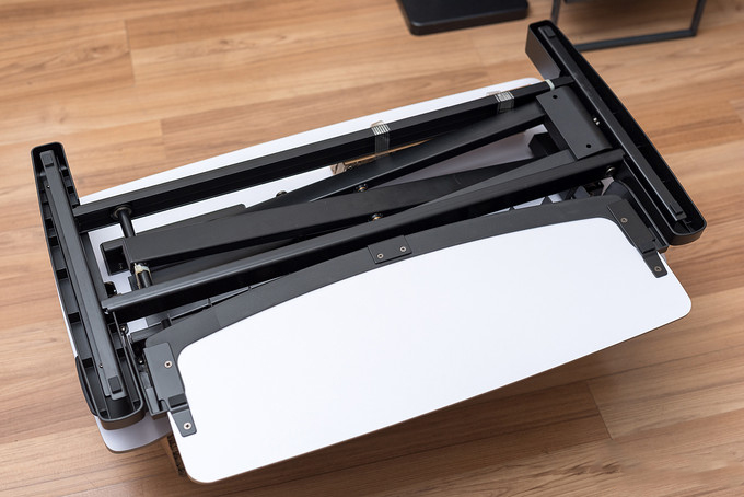 底座依旧是钢结构组件,但结构变了,变为中轴X结构升降,而不是以前侧面双z轴升降,结构变化可能主要也是考虑到大小变化。另外这架子虽然mini化,但实际分量依旧挺沉的,所以官方依旧建议两个人同时搬运(虽然我自己是一个人装好的)防止闪到腰。。。当然有份量主要也是考虑防止这升降桌在桌面上位移,我之前也有用另外一款国产款,升降过程就会位移。