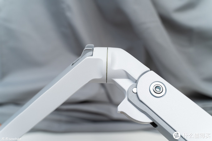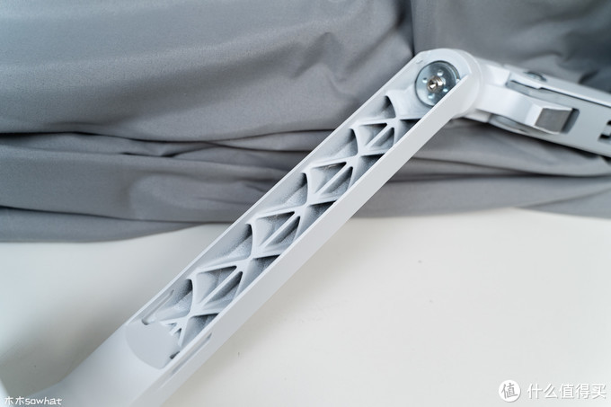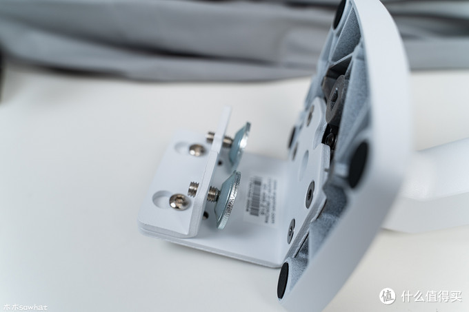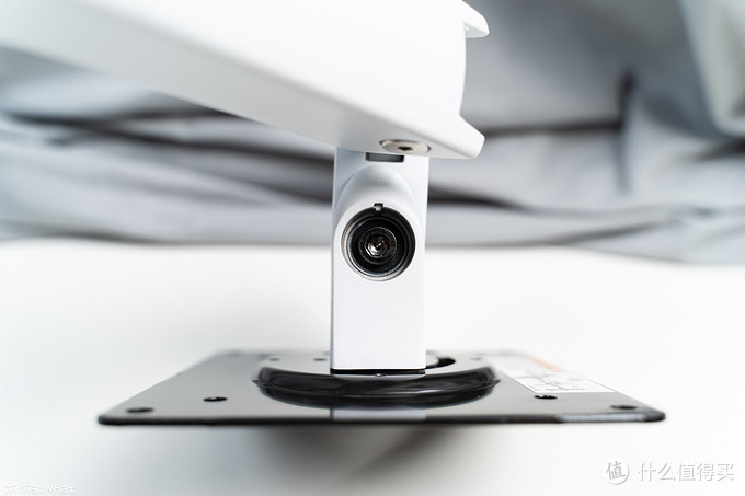 先来看下支架的全貌,此款显示器默认是组完成后的形态,到手可以直接使用,简化了安装程序,可以看到整个支架绝大部分色调为白色。