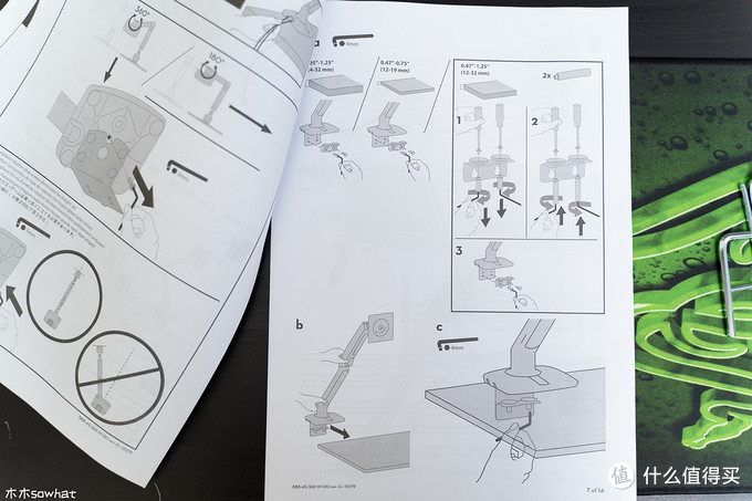 支架的说明书只有几页,但是内容还是比较详细的,强烈建议大家安装前先看看说明书,楼主在调节的时候就走了一些弯路,看了说明书才搞明白。