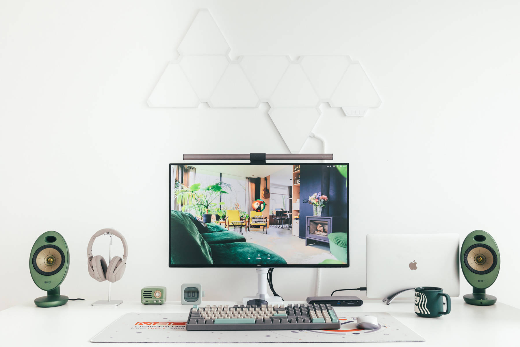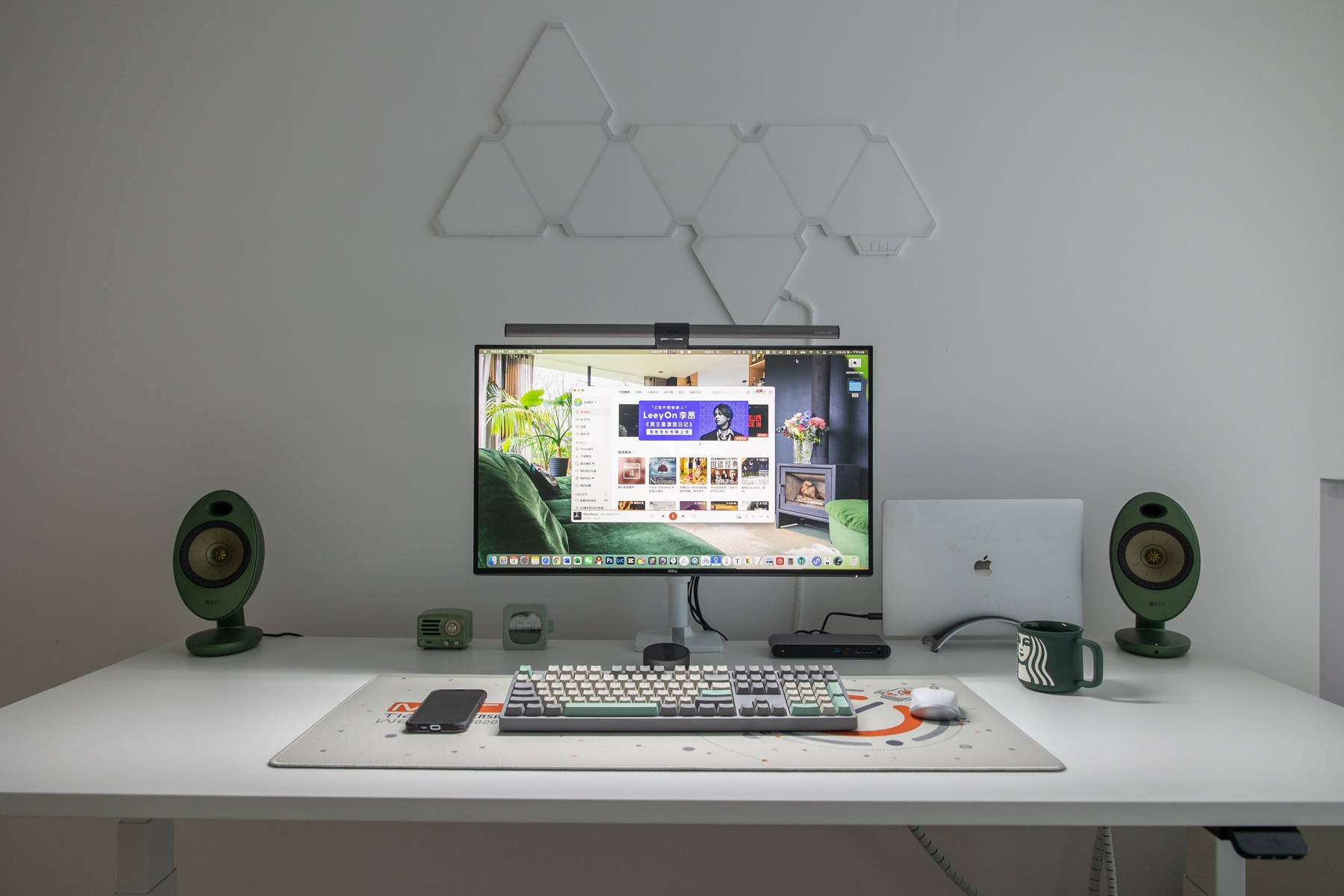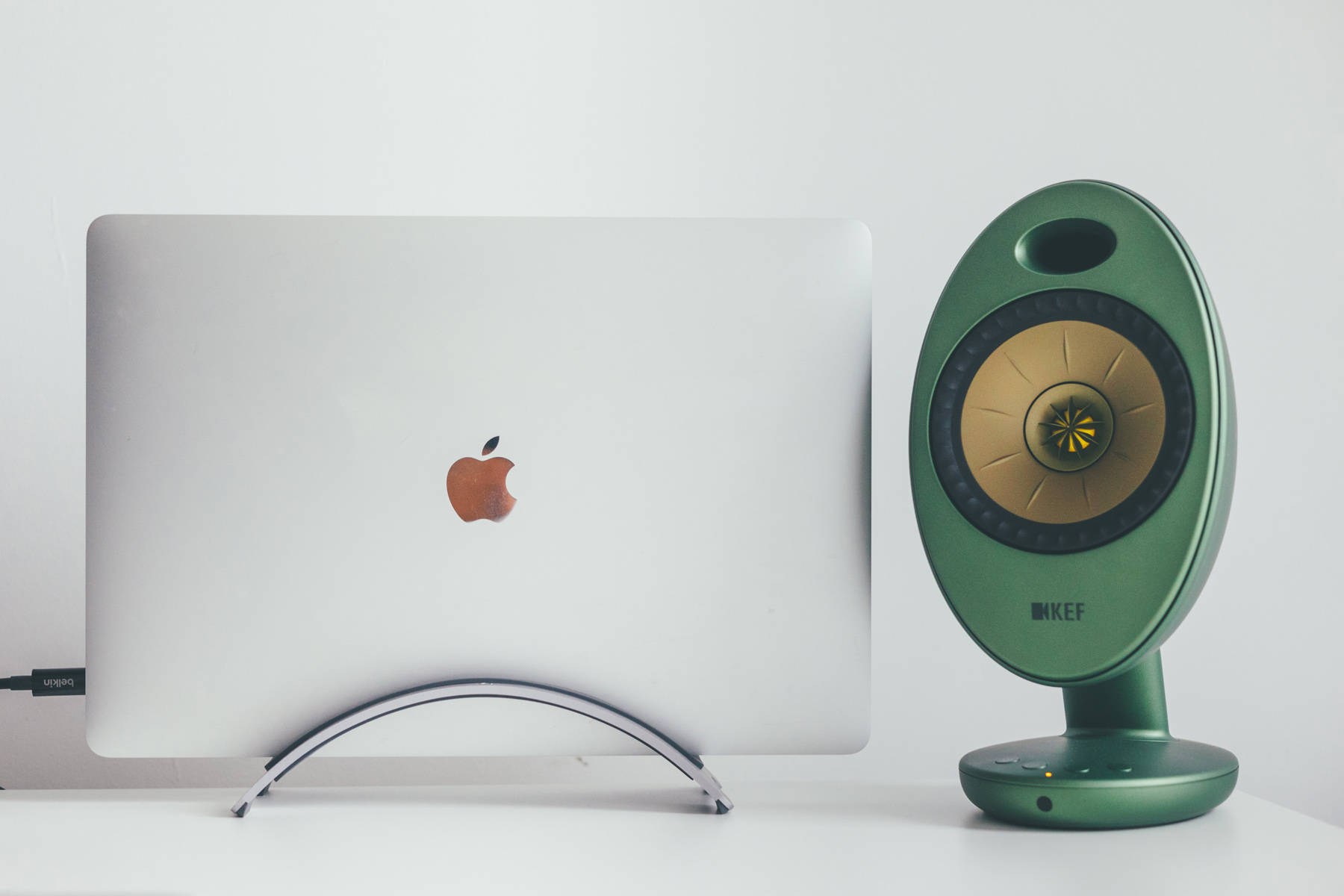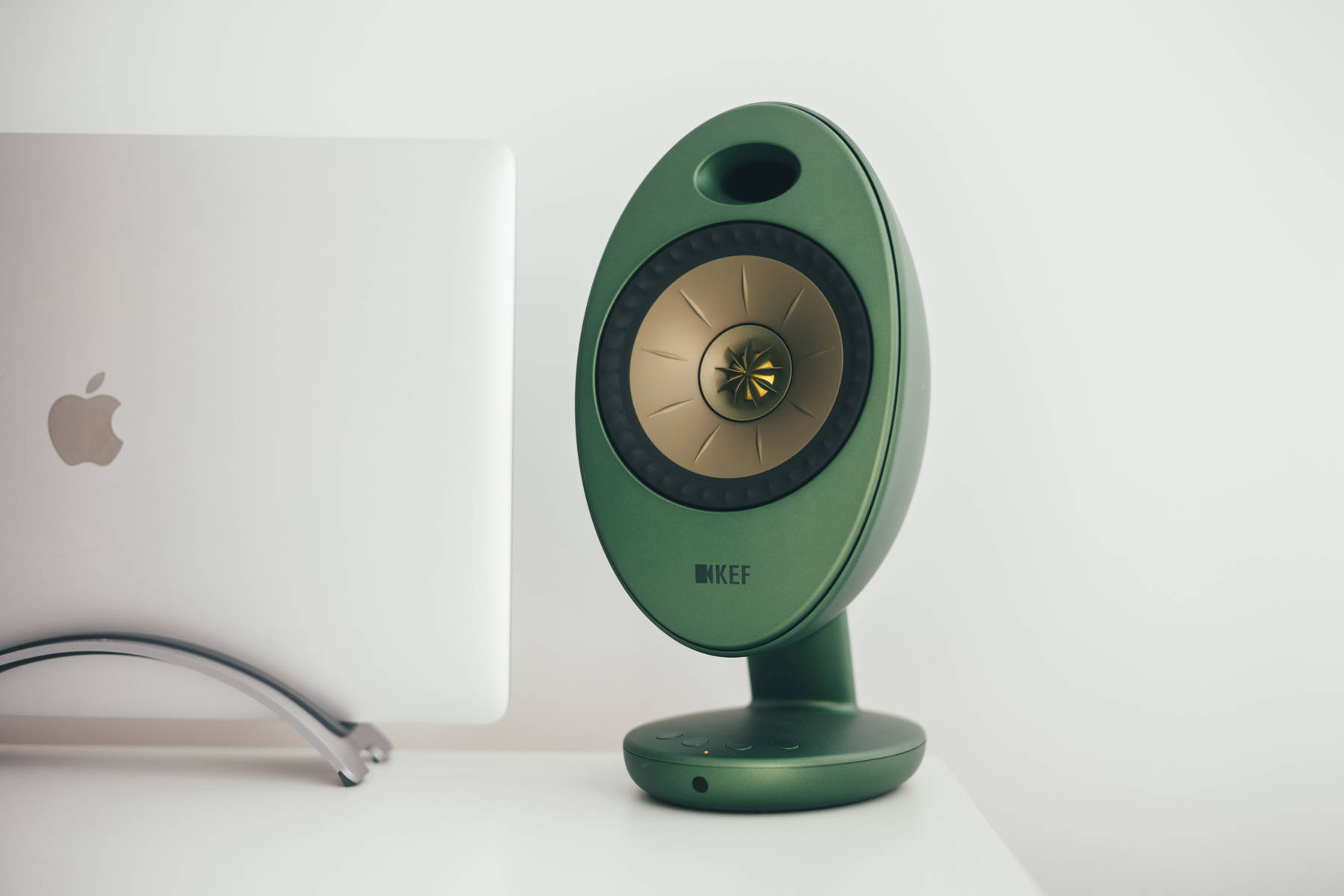 KEF EGG是本次白+绿主题的缘由,当初选择了绿色版本原本是想和绿色版iMac 24寸搭配的。