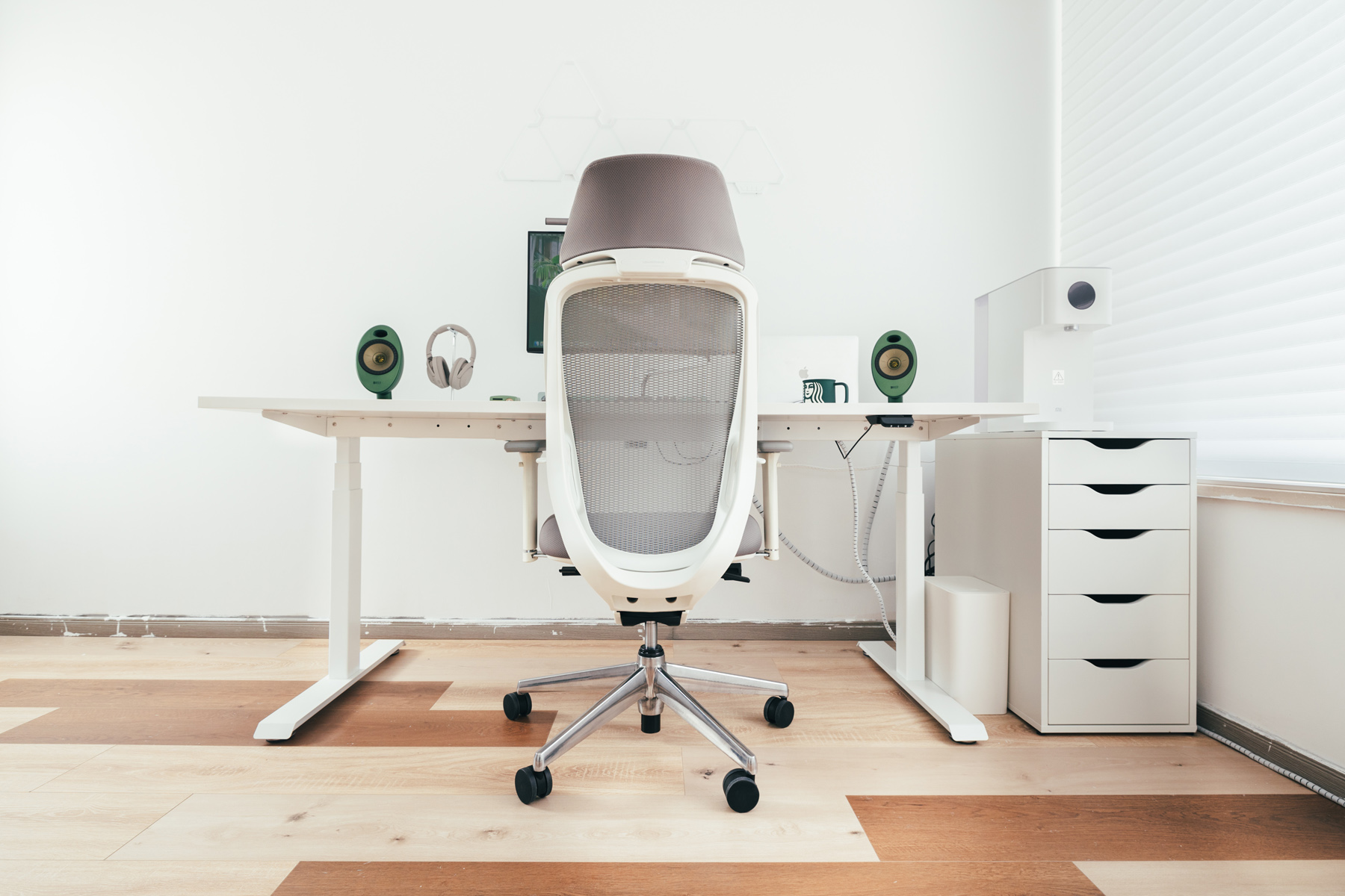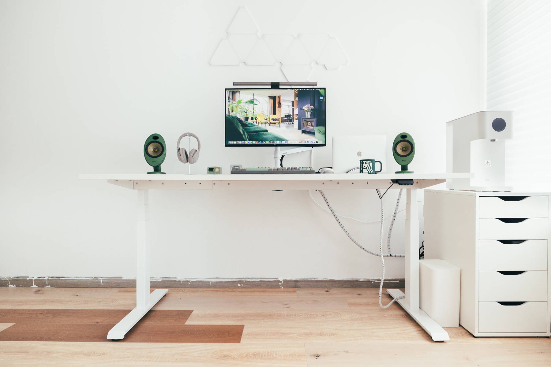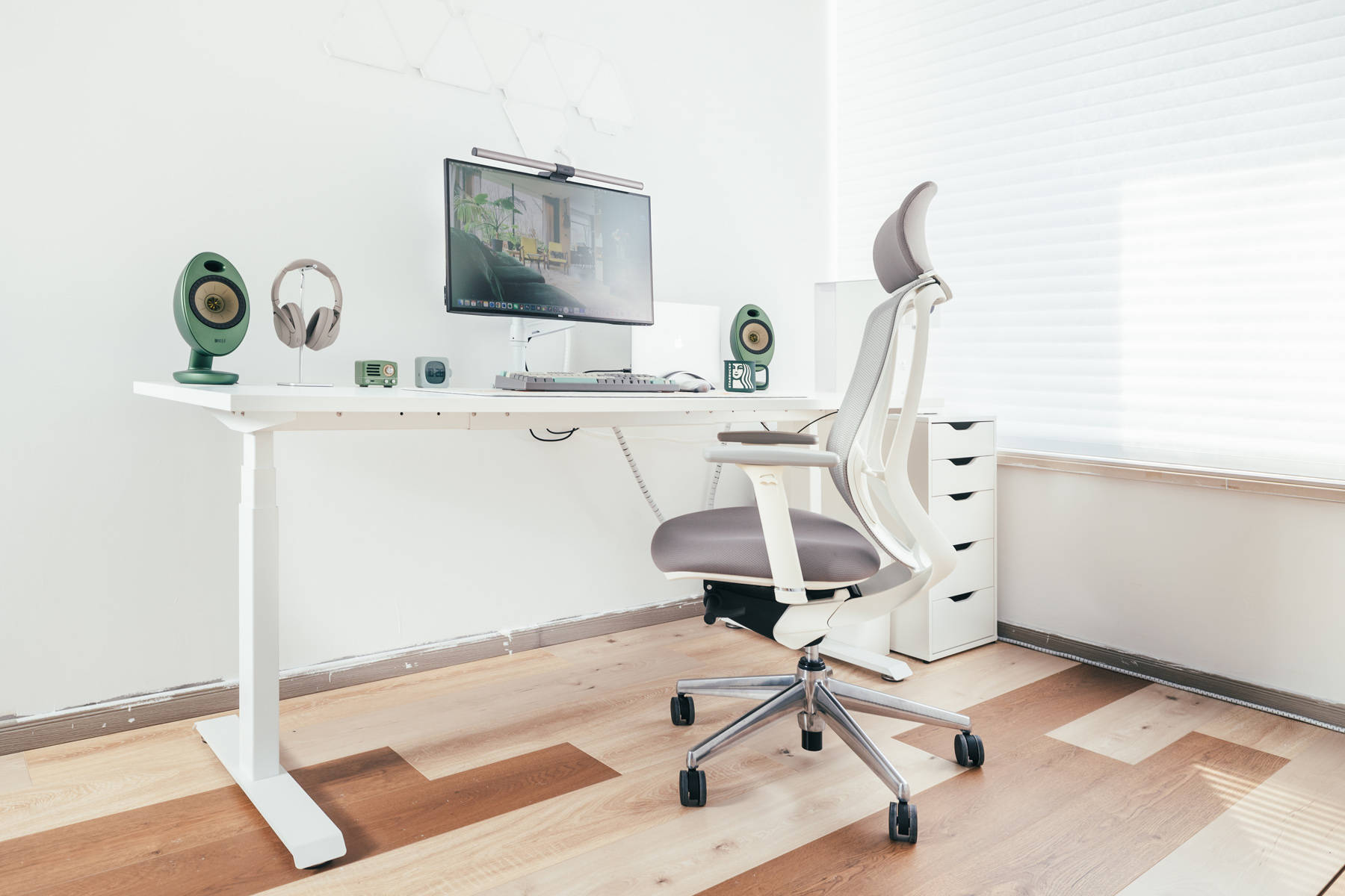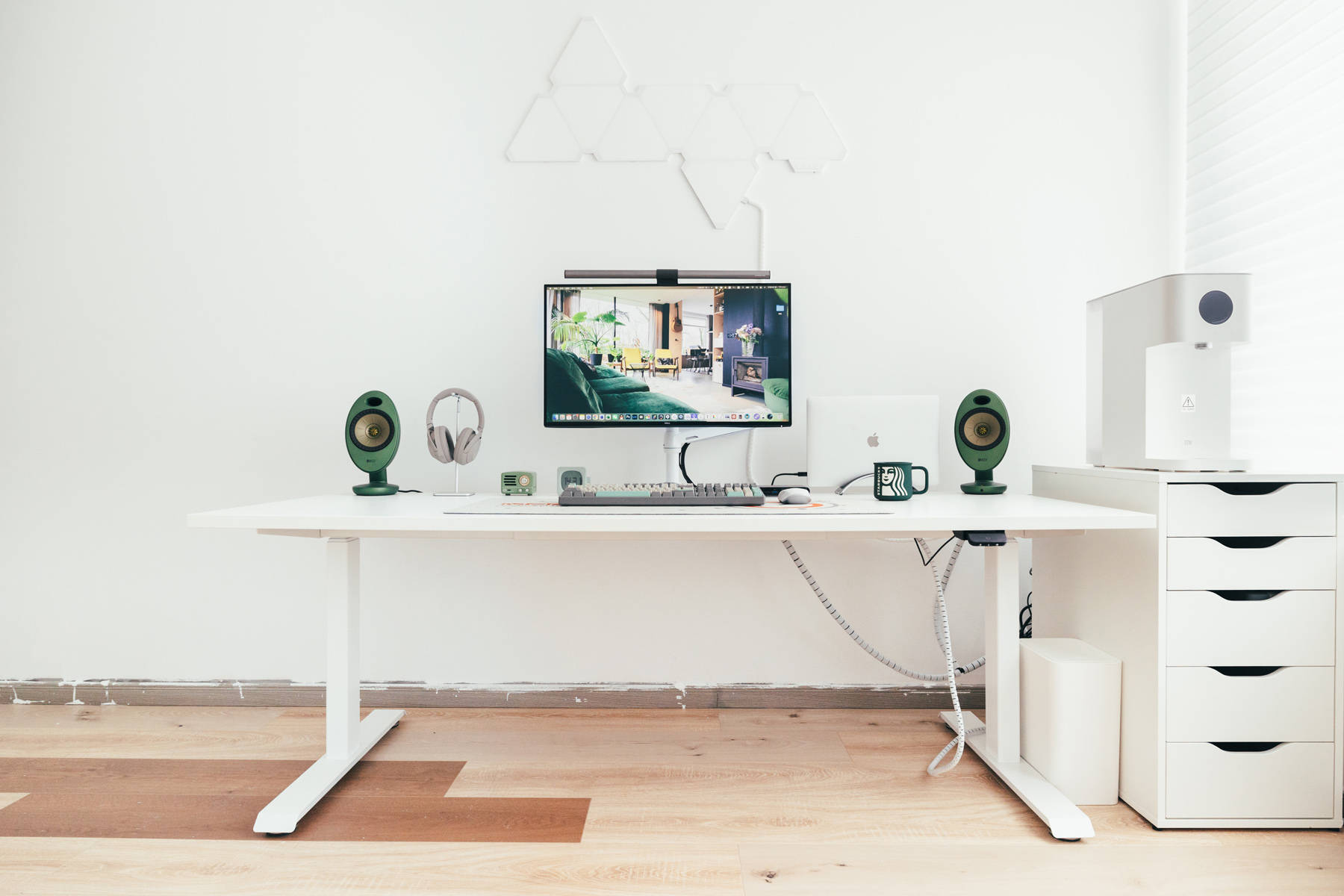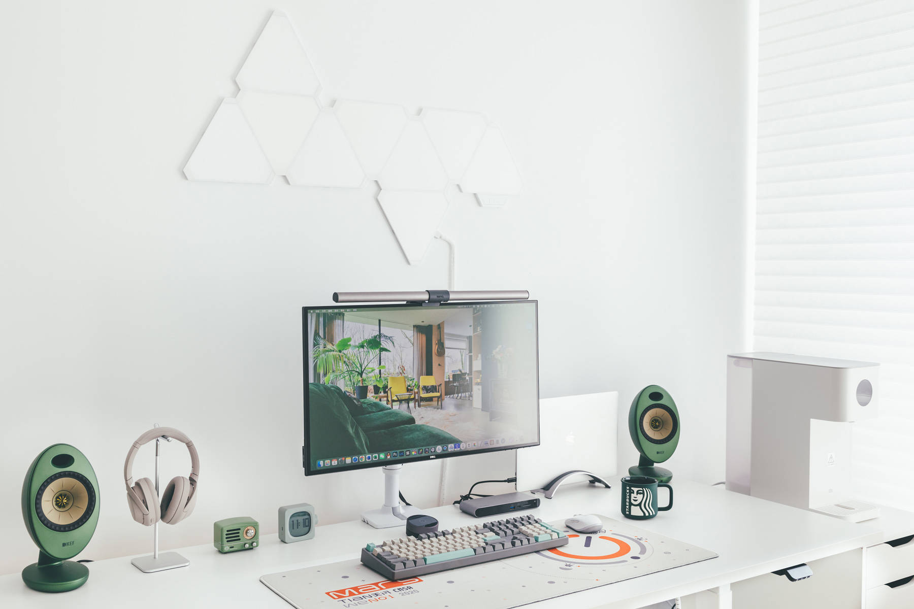 KEF EGG是本次白+绿主题的缘由,当初选择了绿色版本原本是想和绿色版iMac 24寸搭配的。