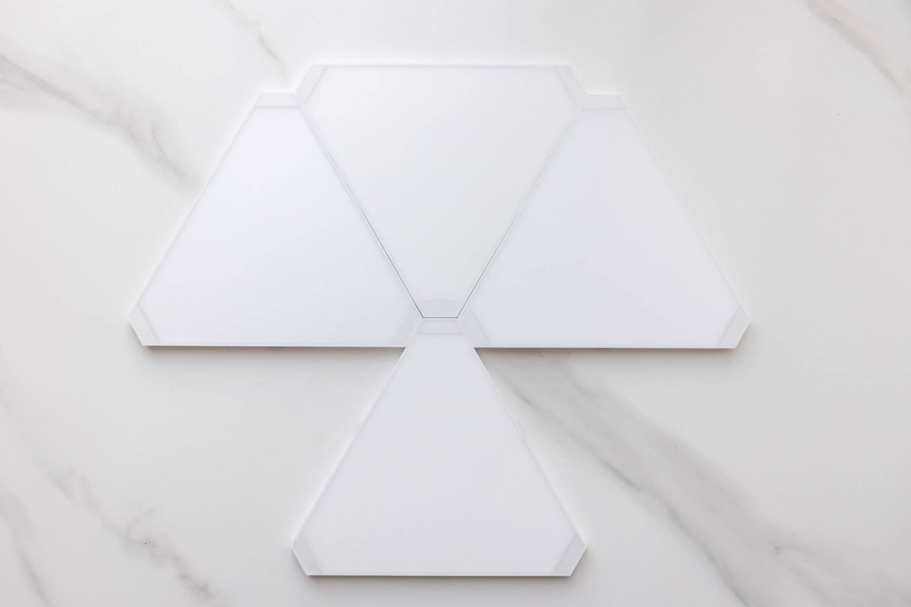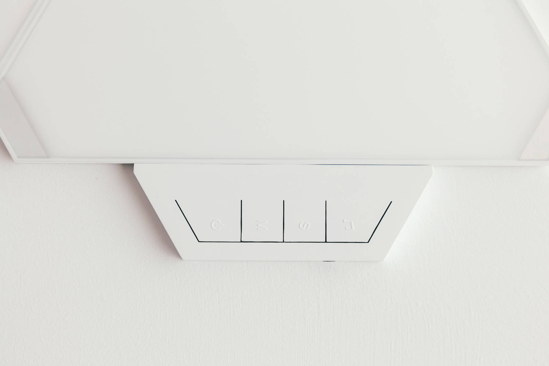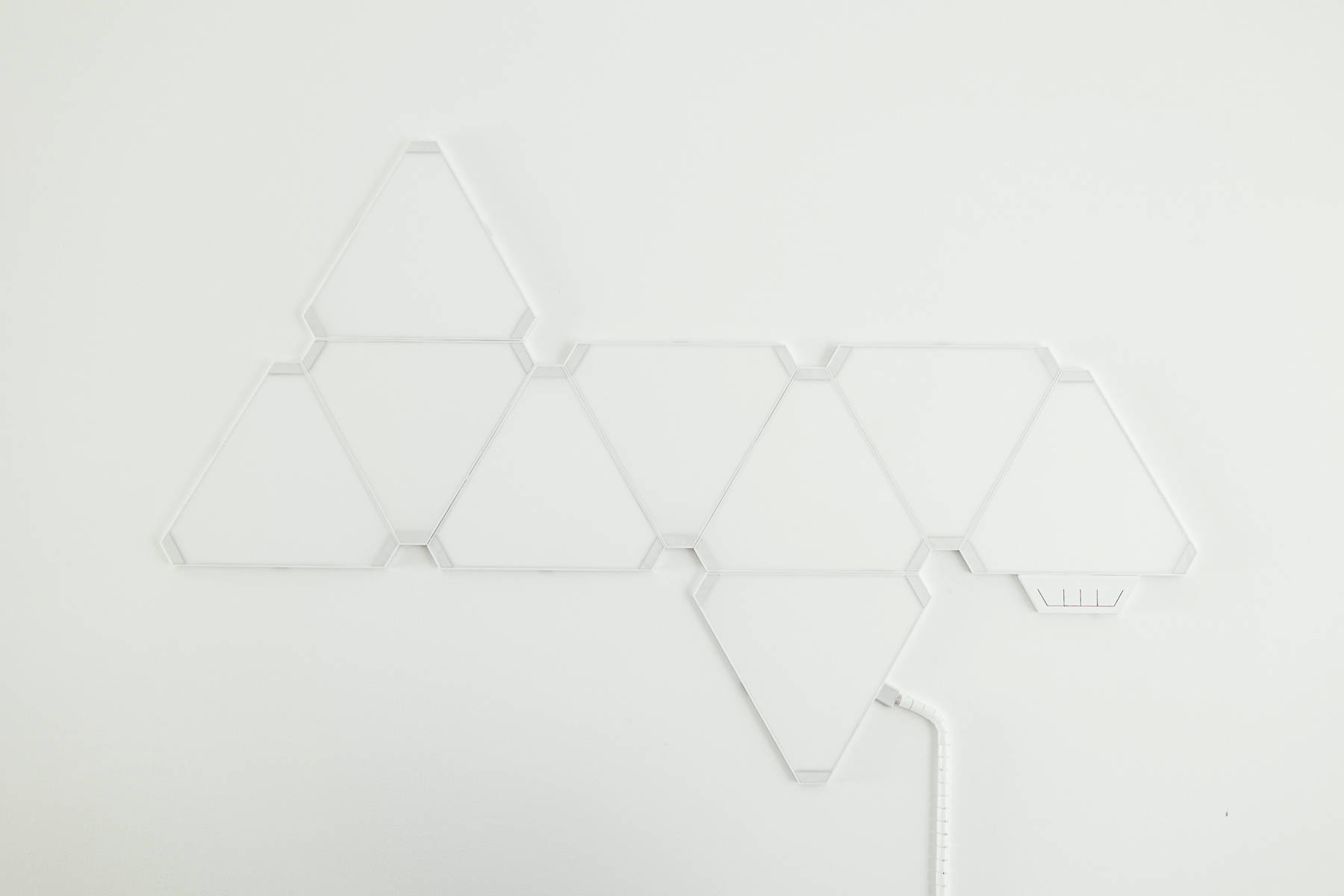 正面墙的9只Yeelight 智能奇光板,本体是白色,不点亮的时候充当装饰品,不至于让整面墙显得过于单调。