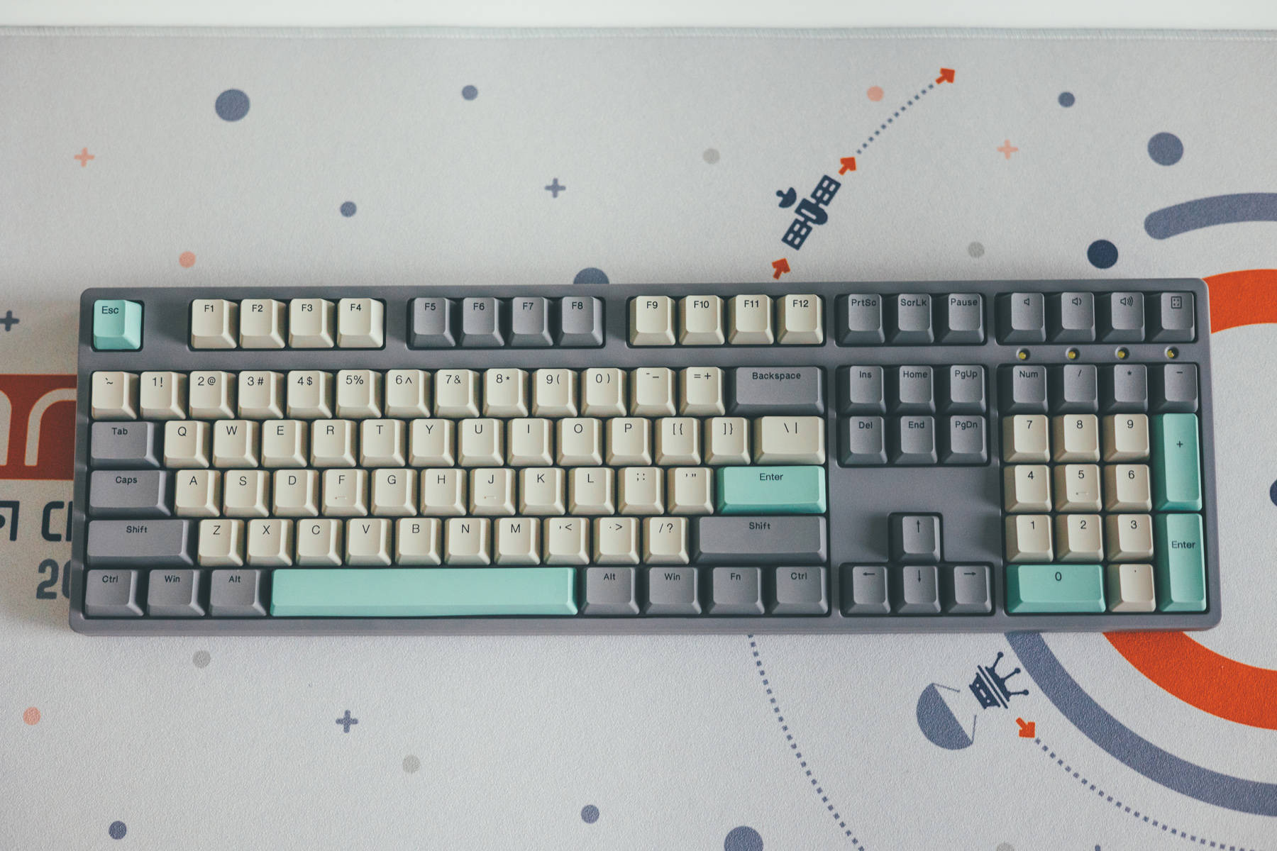 IKBC W210深空灰机械键盘,选用这把键盘还是因为自带绿主体,准确说是粉笔绿。
