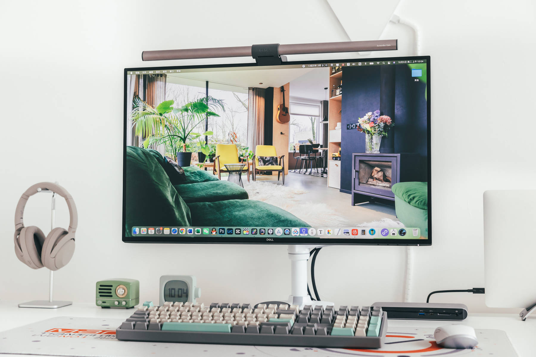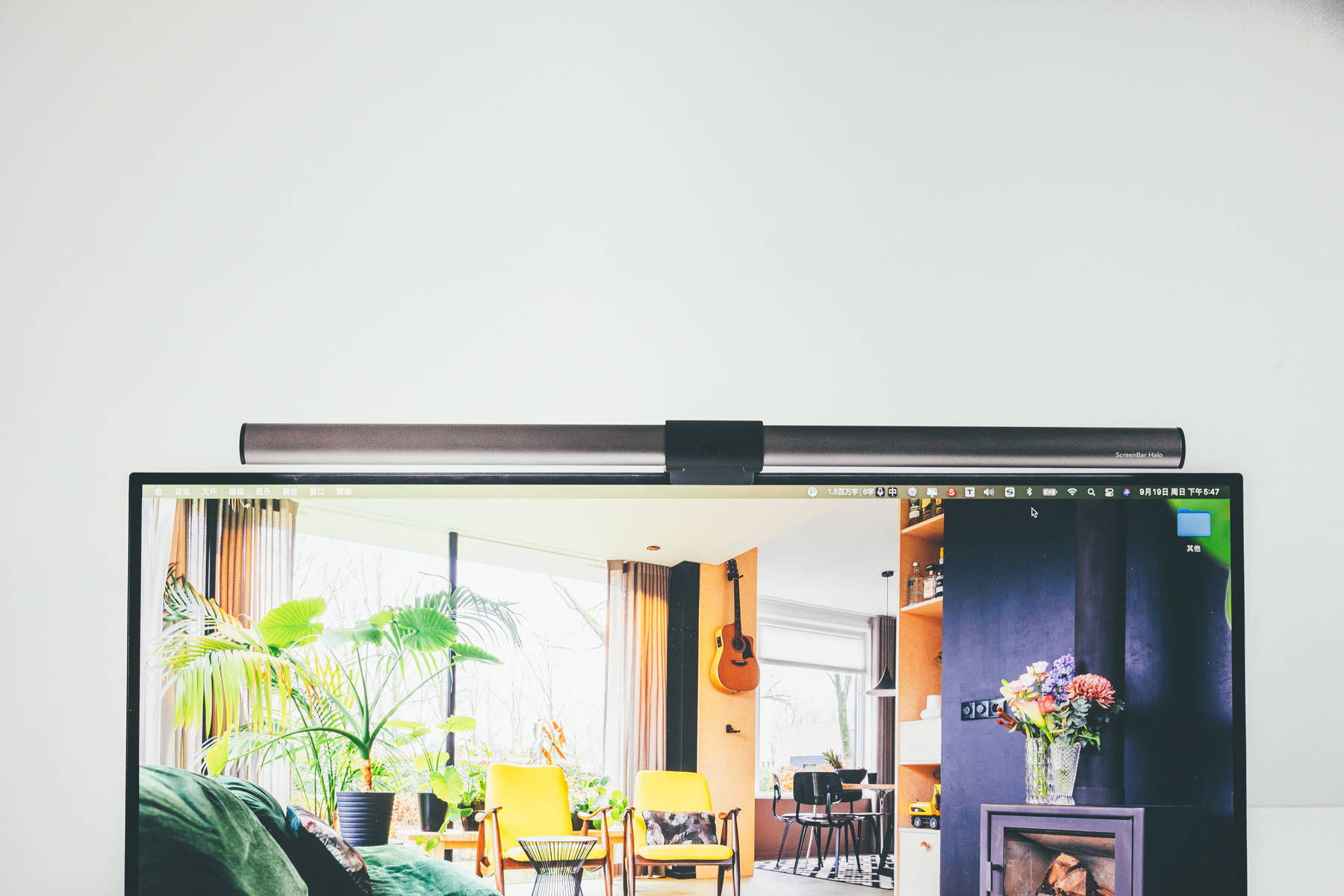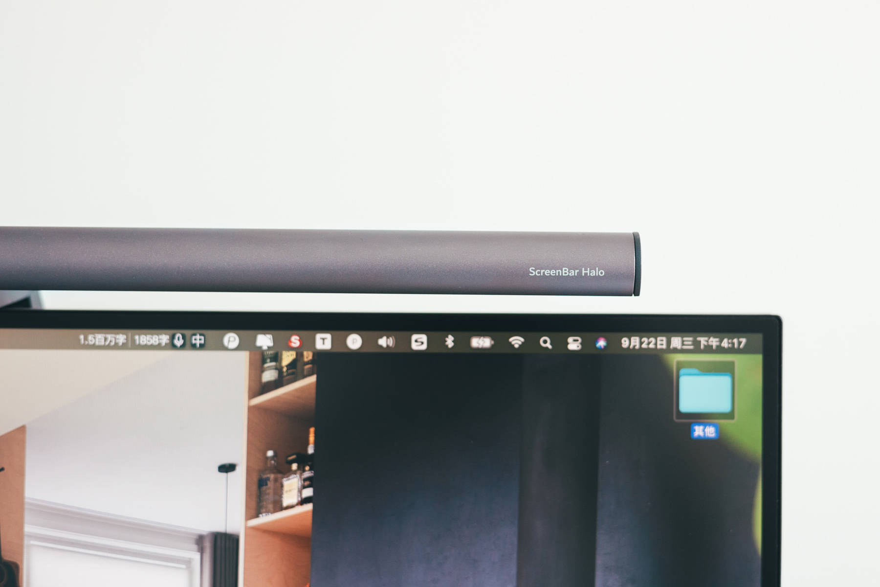 屏幕挂灯依旧是明基的Screen Bar Halo,毕竟明基只有这一款是无线的,之前也用过其他品牌的挂灯,虽然在价格上优势明显,但是依旧会造成屏幕特定角度反光,对比明基Screen Bar系列屏幕挂灯,则是顶部非常细的一条,而且基本在边框上,完全不影响使用。