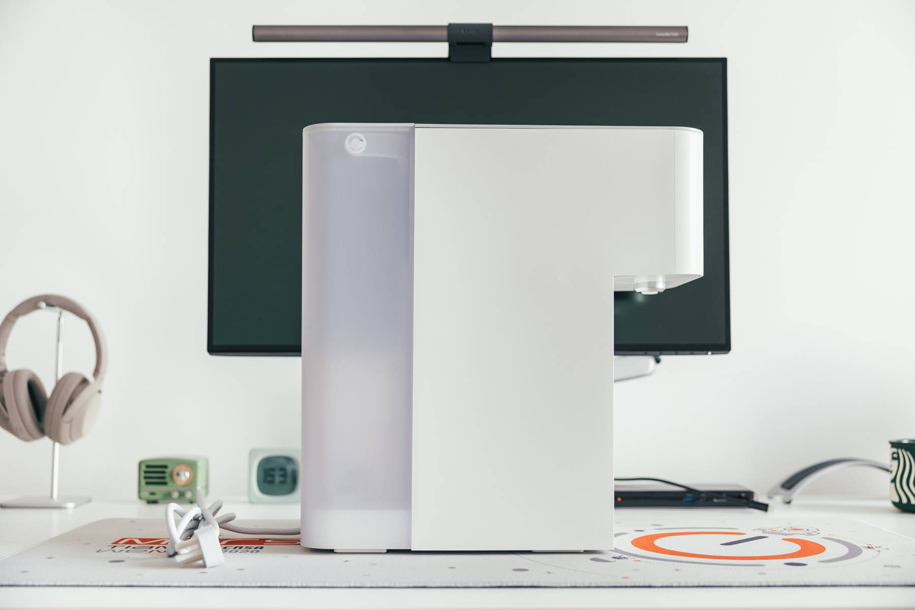 另外和住家不同,工作室并没有安装净水器,所以饮水方面还单独准备了小米台式净饮机,可以直接RO反渗透过滤自来水并直接加热,会非常方便。