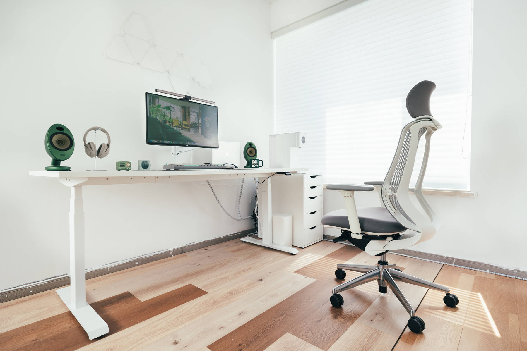 在我的工作台右侧我还增加了香格里拉帘,具备不错的透光性,也能遮挡刺眼的光线,质量还可以,后续准备搭配绿米的窗帘伴侣,实现自动控制功能。