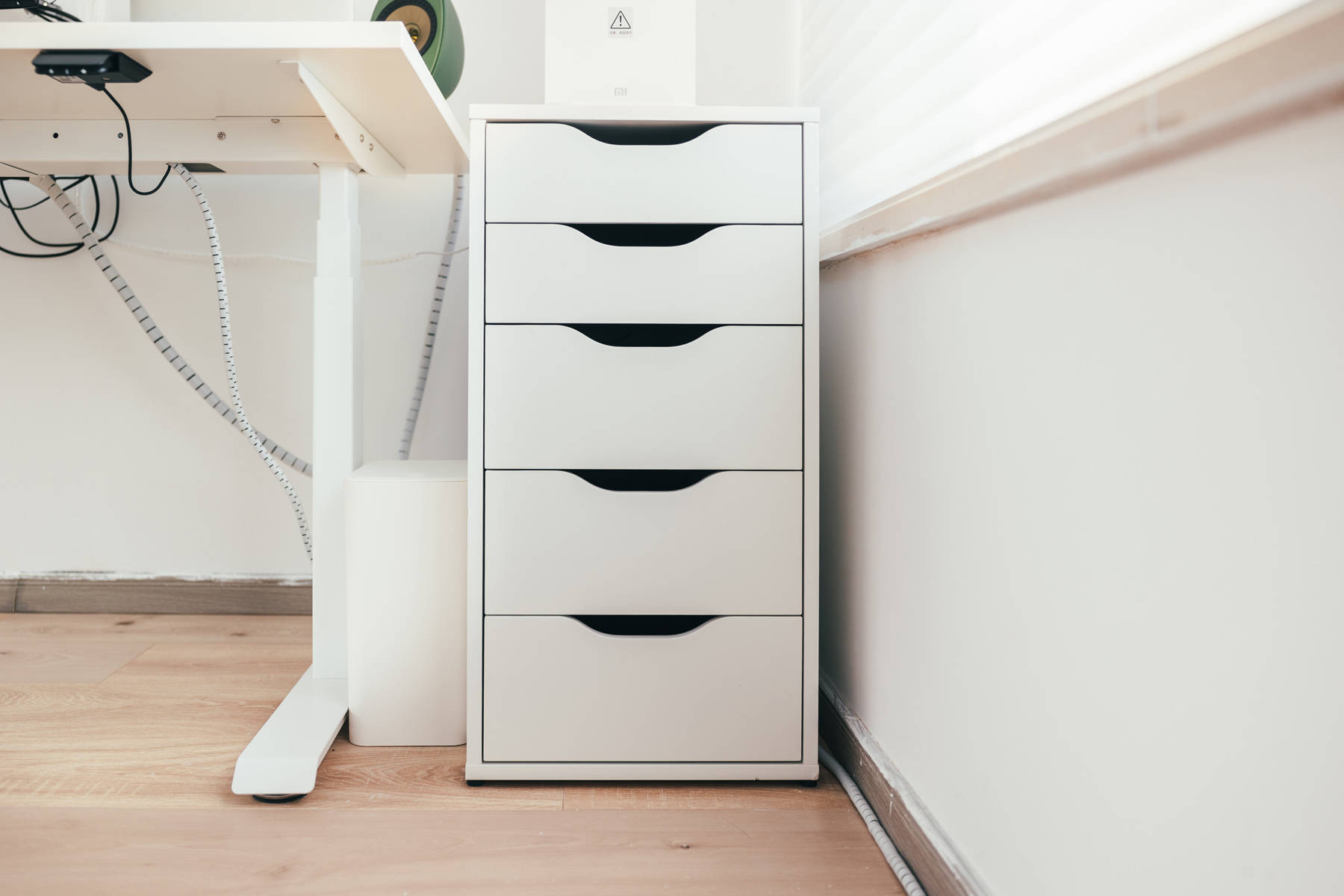 宜家ALEX 阿来斯抽屉柜顶部摆放了小米的台式净饮机。