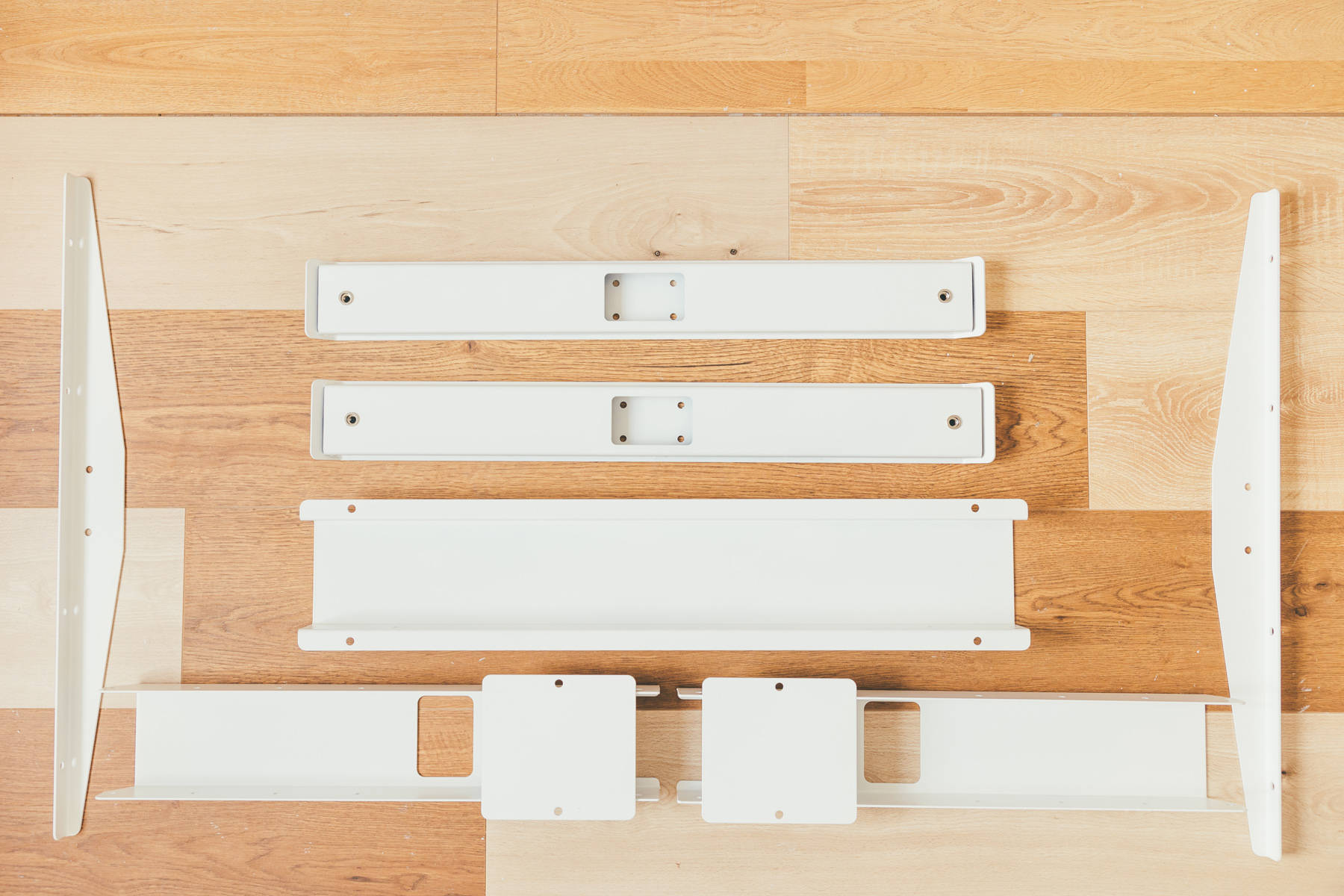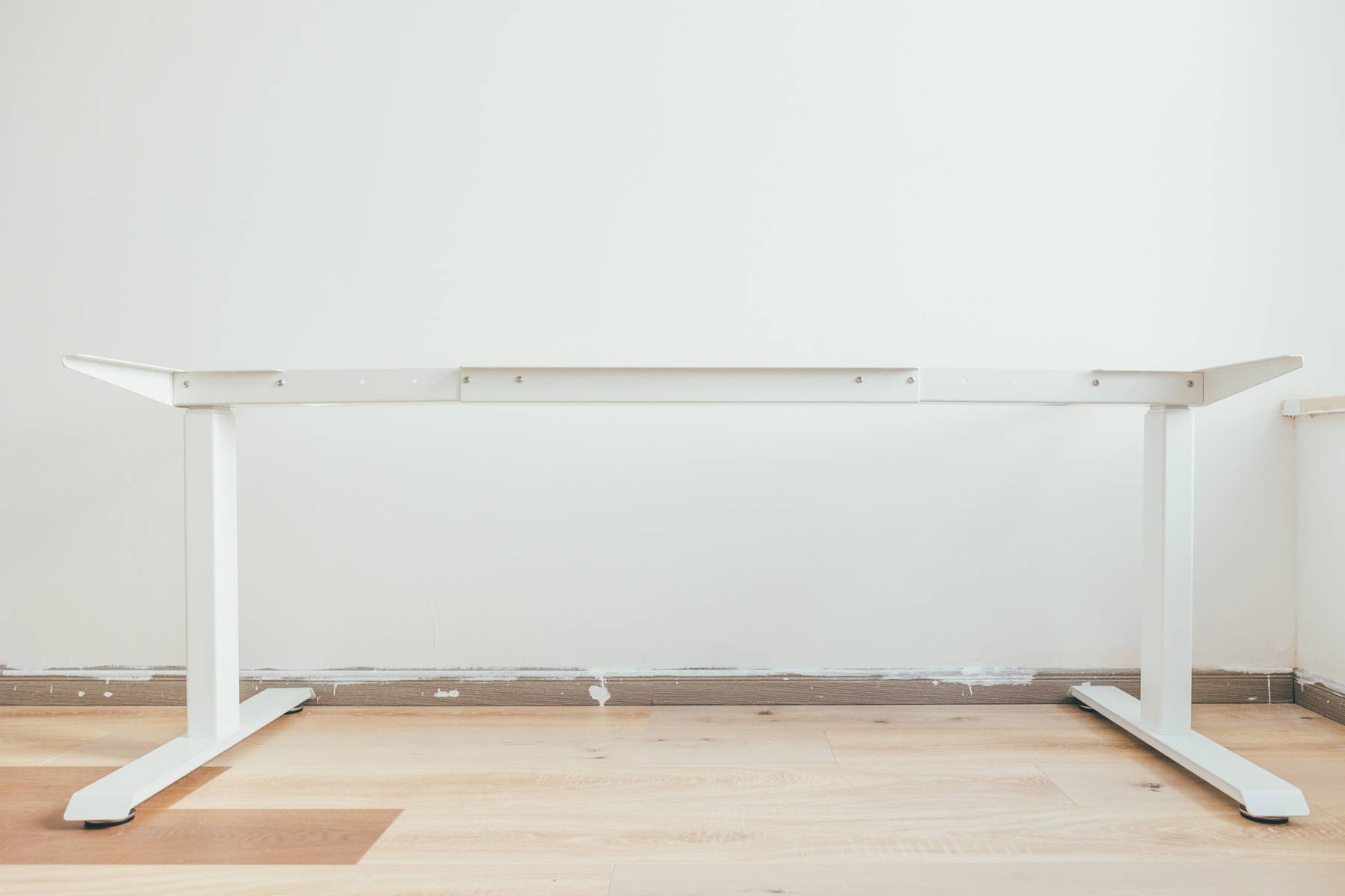横梁和桌腿均为冷轧钢材质,份量十足,其中横梁是采用了可调节长度安装方式,也就是说可以适应不同长度的桌板,如果你日后觉得长度不够用,也可以换一款更大的桌板用于升级。