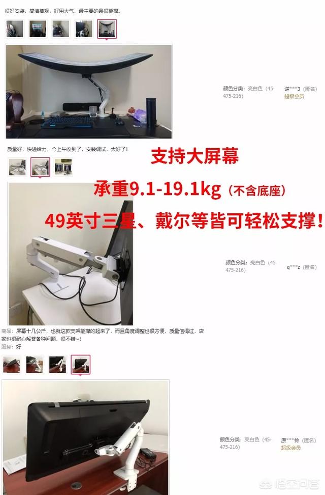 (1)爱格升恒力技术加持爱格升的显示器支架系列产品均采用了自主研发的恒力(Constant ForceTM)专利技术。此技术可以让用户轻松地将显示器、电视、键盘,甚至整个工作站悬停在所需要的位置。当用户需要将屏幕抬起、倾斜或转向,只要在支架活动范围内稍稍均匀用力即可。爱格升45-475-216支持大屏幕,承重9.1kg——1901kg,足可以看出支架的承重能力,我们的客户也有很多买家秀哦!(2)解救颈椎:调整视角,获得舒适的观看姿势长期低头或伸头观看屏幕,易造成颈椎部位的疾病,主要表现为颈背疼痛、上肢无力、手指发麻、下肢乏力、行走困难、头晕、恶心、呕吐,甚至视物模糊、心动过速及吞咽困难等。严重的颈椎病需要通过牵引、理疗或手术等方式进行治疗,既痛苦又花费不菲。相比之下,配备质量好的显示器支架,保持符合人体工程学的科学坐姿,避免颈椎病变,维护身体健康,是非常值得的健康投入。爱格升45-475-216产品测评>>>>现在正在进行年货节,这款产品还有优惠,详情可以去天猫或者京东“爱格升宽静专卖店”跟客服进行咨询。