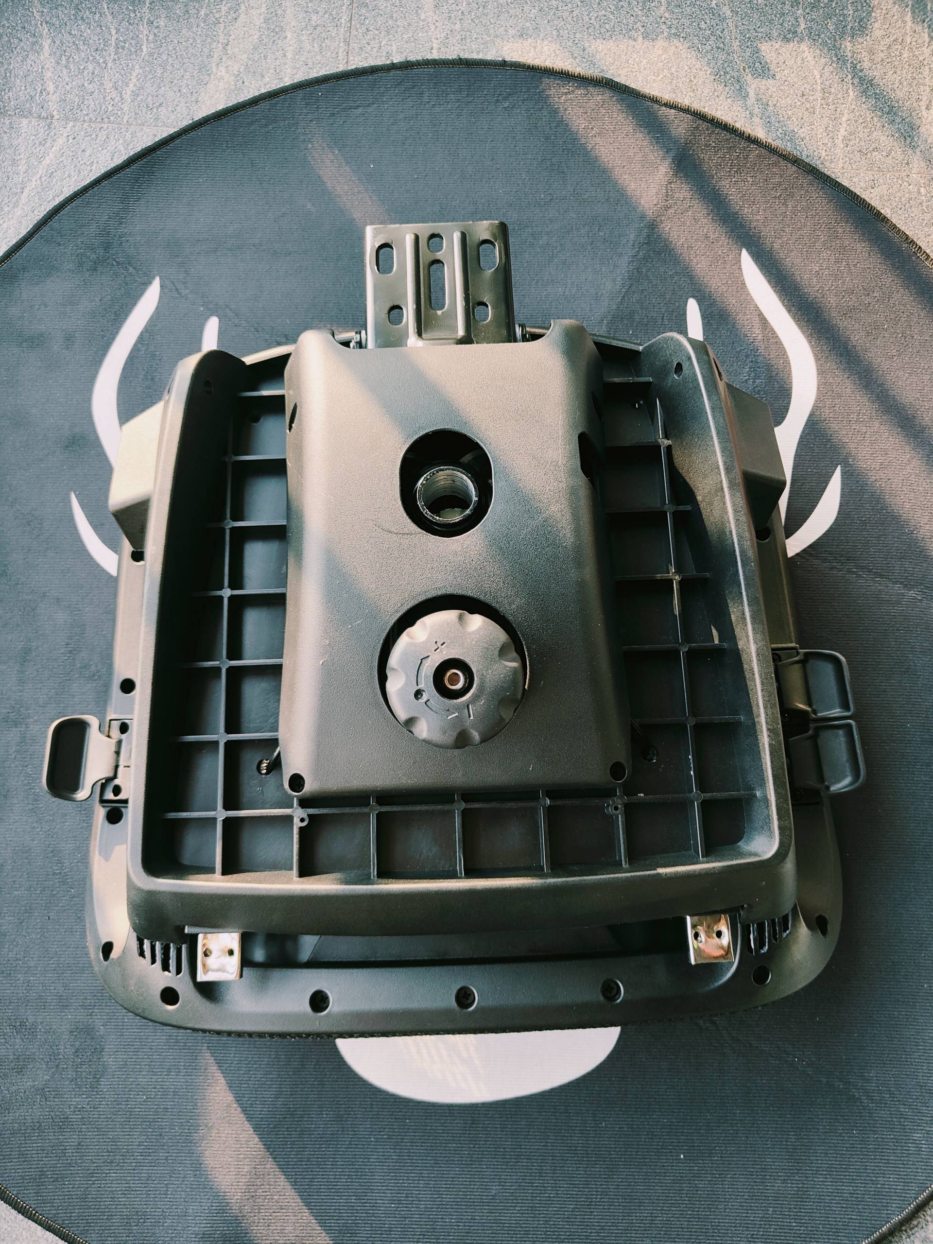 对应的底座部分能看到有一个大号旋钮是用来调节座椅靠背的后仰力道的,就我哥们这体型直接放到最大力道上就得。