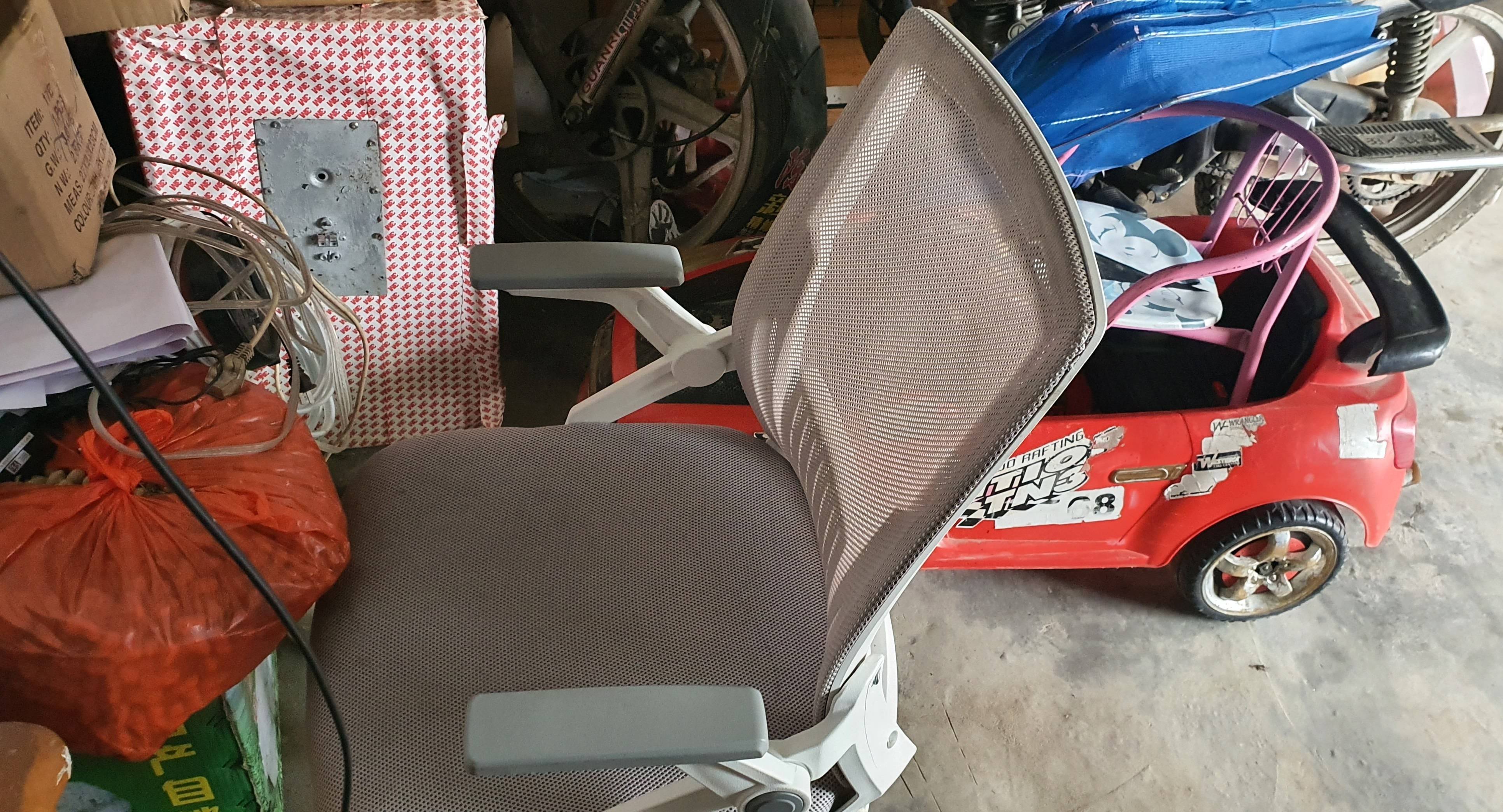 现在我已经将它废弃了。原因很简单:坐着不舒服,轮子非常的卡顿,没用几天液压顶杆也坏了