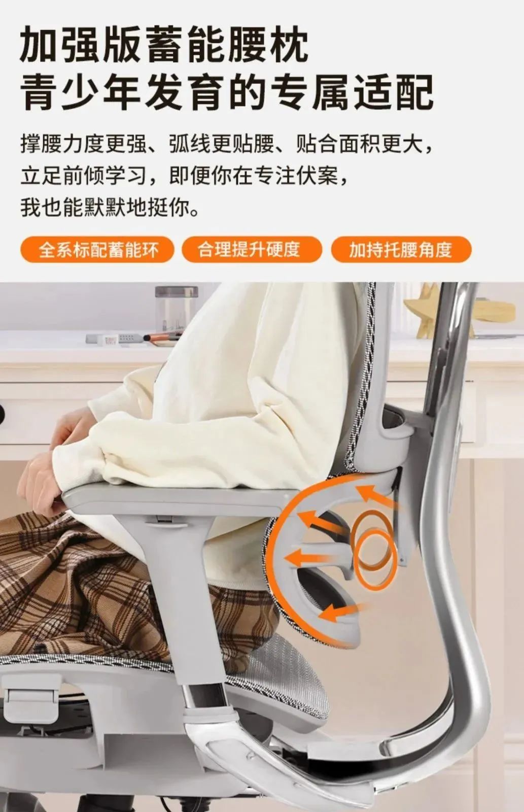 加强版独立蓄能腰枕,青少年发育的专属适配,撑腰力度更强、弧线更贴腰、贴合面积更大。立足前倾学习,即便孩子专注伏案,Ta也能默默挺你。