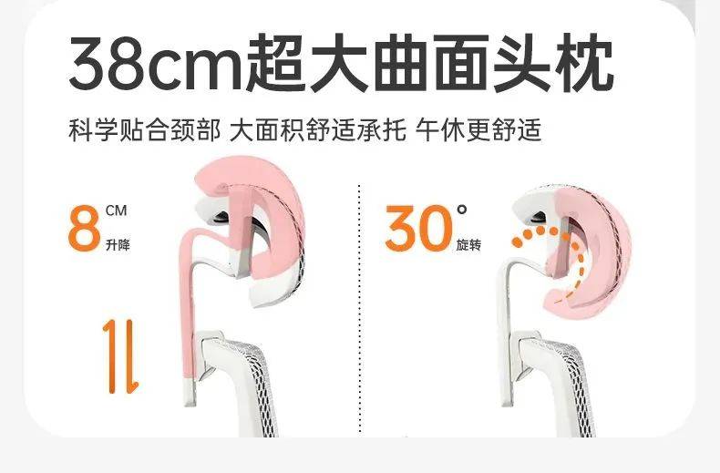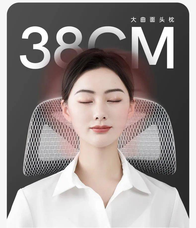 38cm大曲面头枕如同午睡枕头,承托头部重量,舒缓颈椎压力,让大脑得到充分休息。