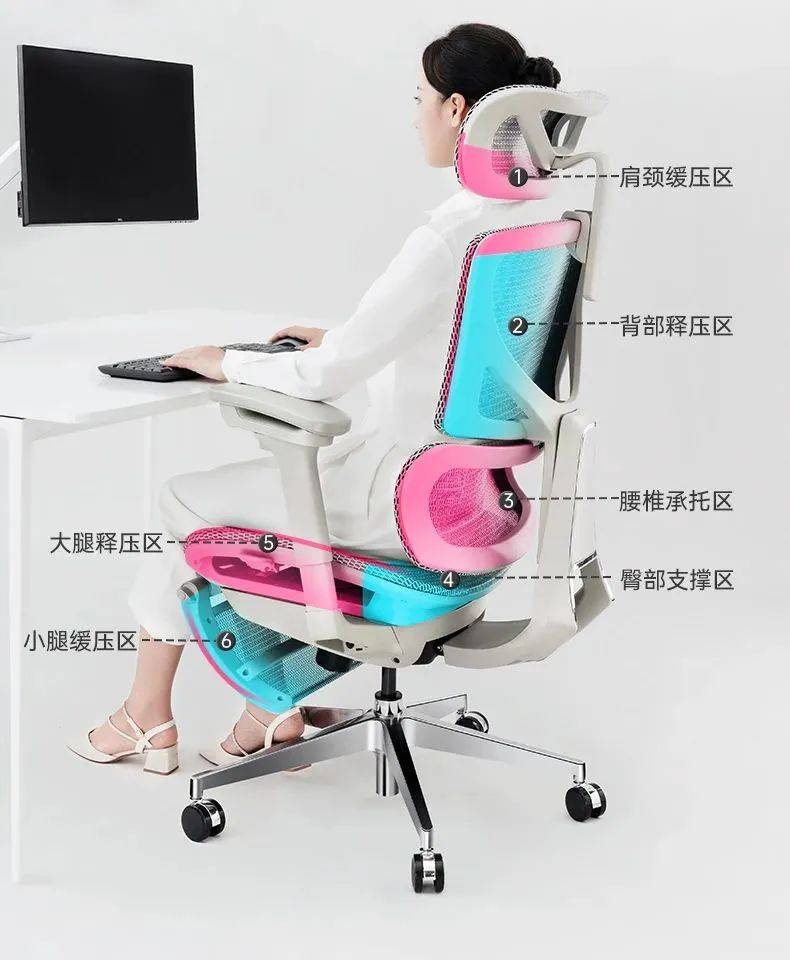 精准分析久坐姿势,以动态力学平衡系统打造不同区域不同支撑,实现分区散力,舒缓脊椎承压。
