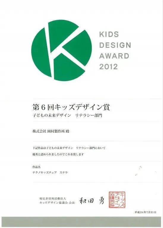 日本儿童设计奖(Kids Design Award,キッズデザイン赏)是一个由儿童设计协会做出评选,以所有产品、空间和服务为对象的表彰制度。设置这个奖项的目的是选出符合儿童设计三大使命的优秀作品,向广大社会更好地传达。