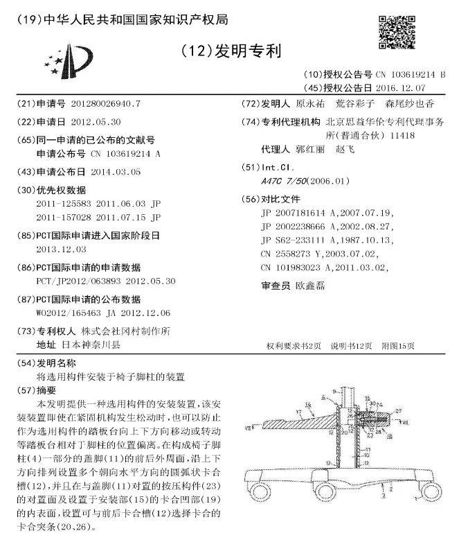 Stella儿童学习椅的可拆卸可升降脚踏设计早在2011年6月就在日本申请了发明专利(优先权数据:2011-125583 2011.06.03 JP),2012年5月在中国申请发明专利获得批准(授权公告号:CN 103619214 B)。