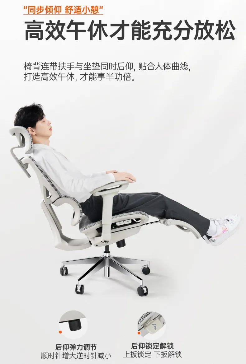 达宝利Ergosmart工学办公椅为职场精英配备了收纳式加长伸缩脚托,椅背连同扶手与坐垫同时后仰,贴合人体曲线,打造高效午休,方能事半功倍!