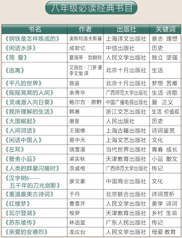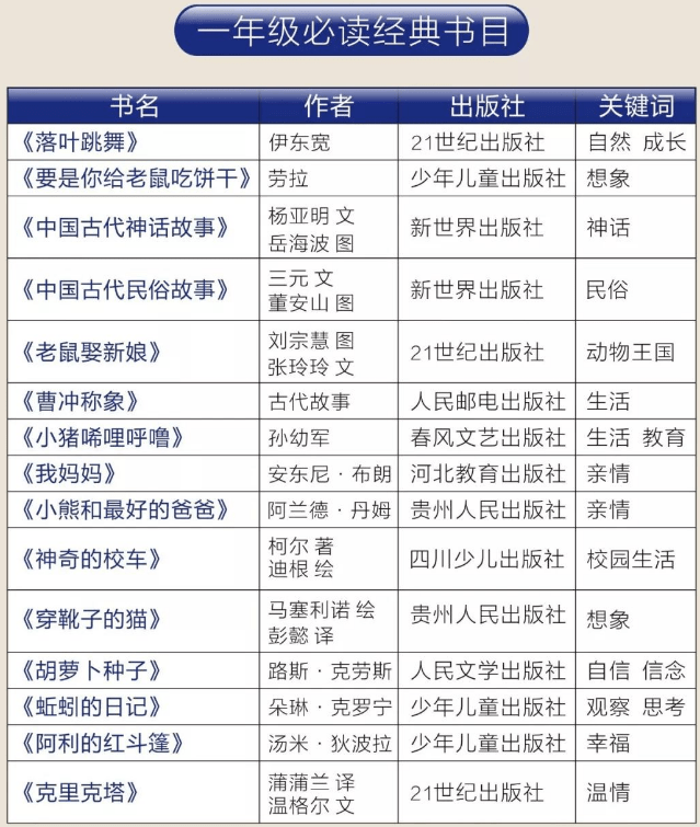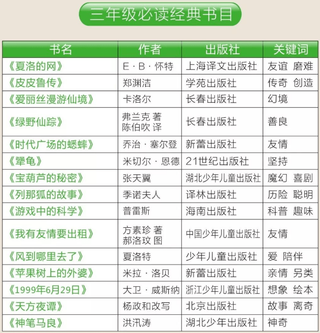 以下是教育部推荐1-8年级学生的必读书目,买回来给孩子看。父母有条件最好也能放下手机挑选适合自己的书籍,与孩子们一同享受陶冶情操、提升自我的阅读时间。