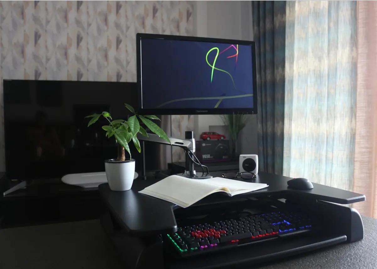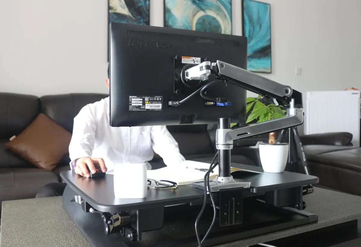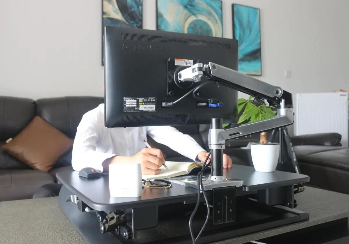 爱格升(Ergotron)显示器支架的倾斜调整范围为:-5°到75°,让用户可以仰着头对着显示器,也可以轻松实现站着办公。