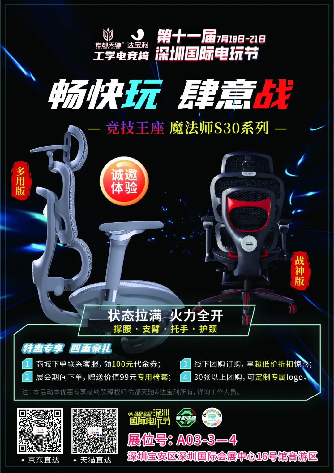 魔法师S30工学电竞椅即将亮相深圳国际电玩节