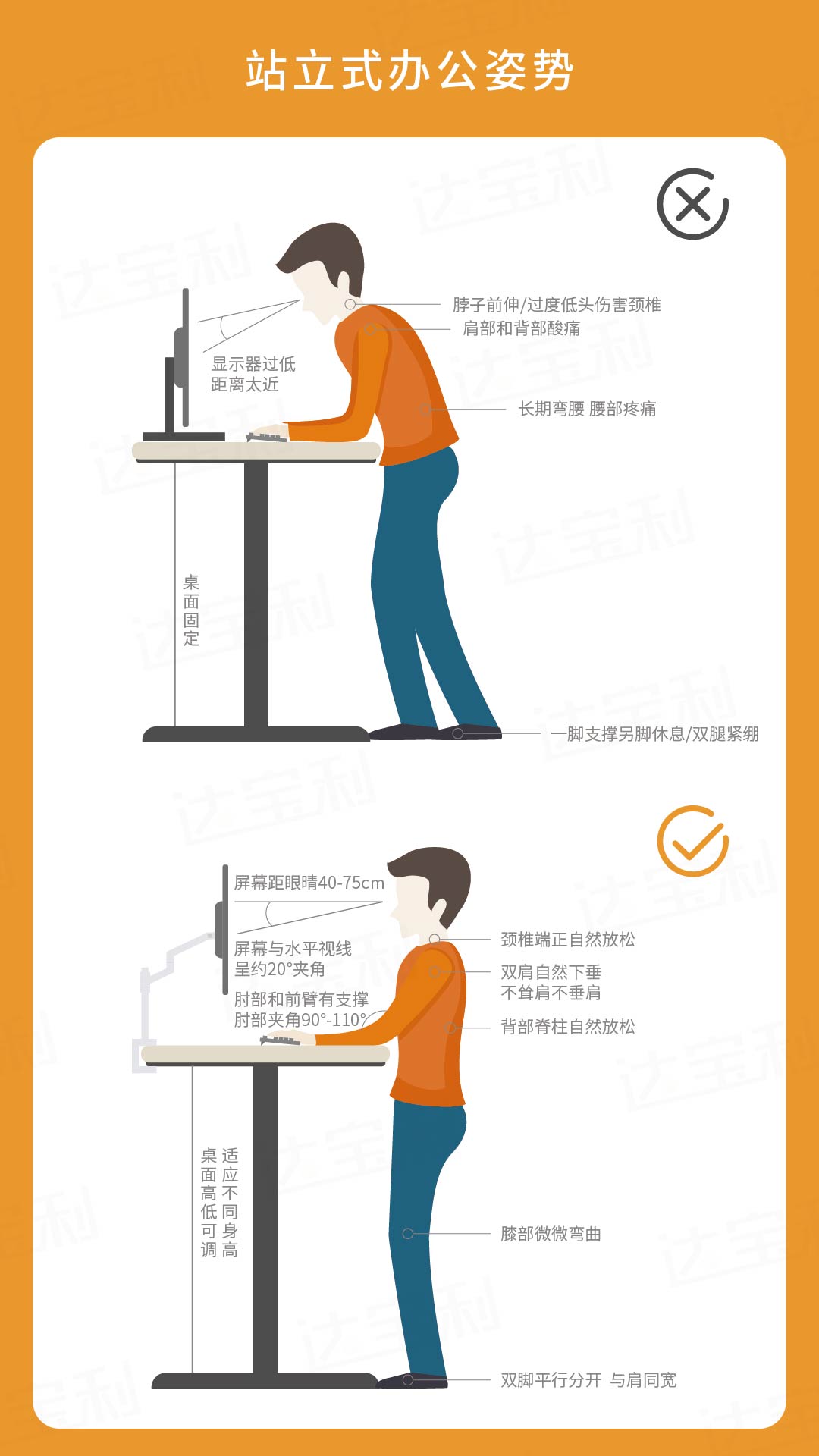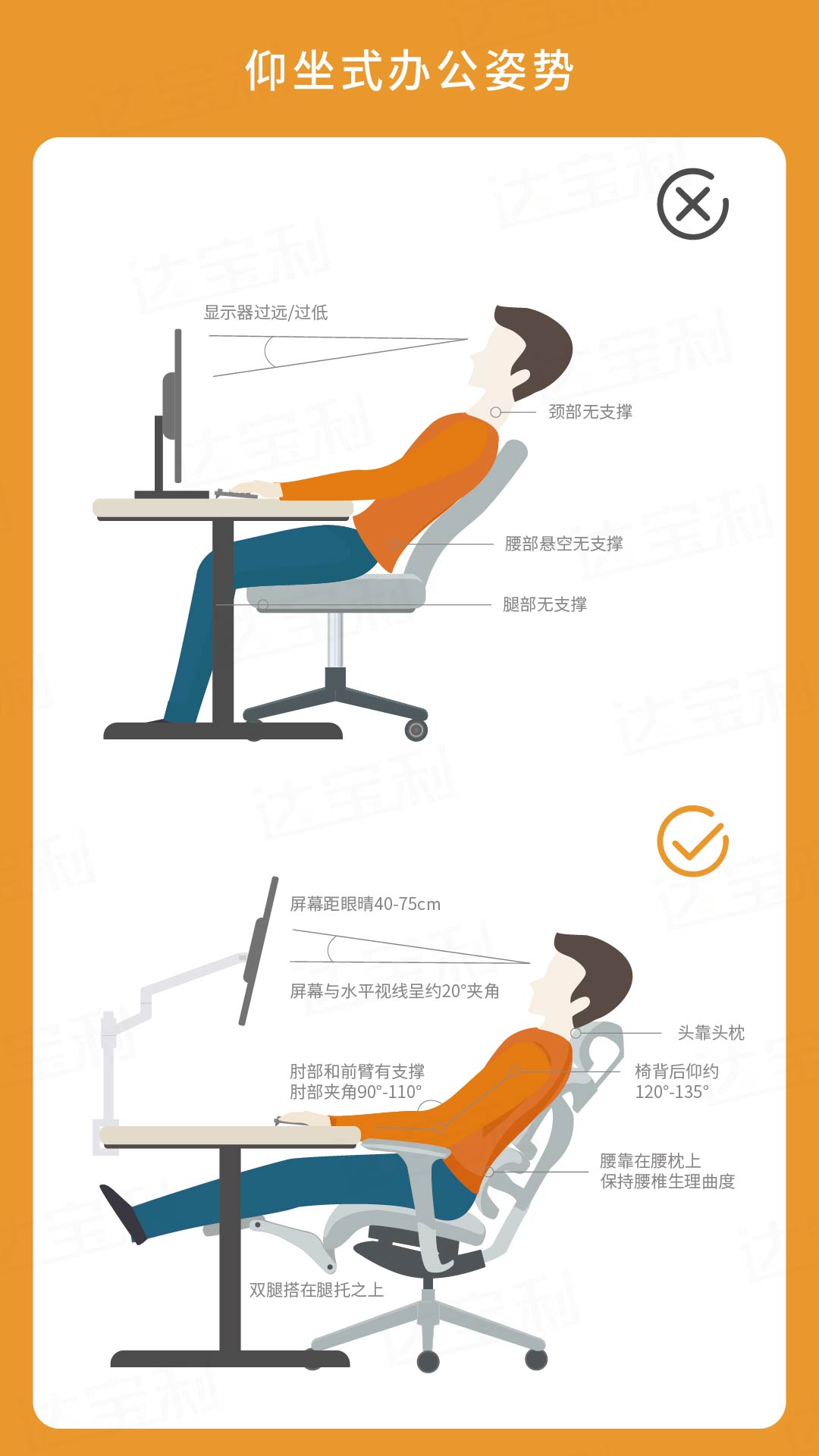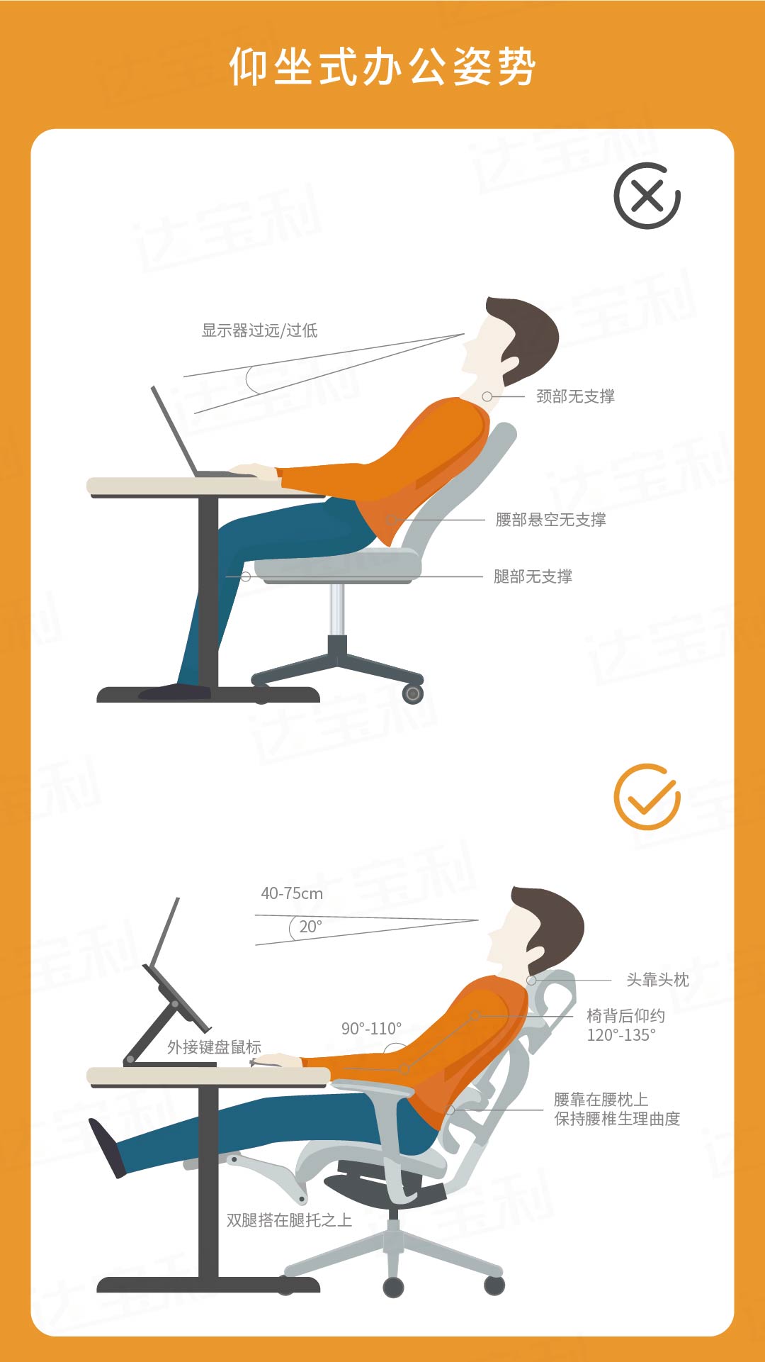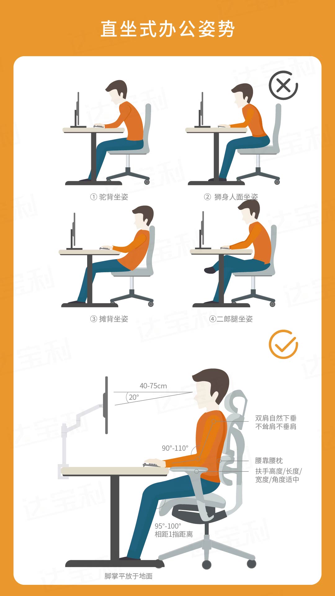 达宝利健康办公姿势系列示意图(第2期) 能够清楚的告诉自己 哪些是正确的电脑办公姿势 哪些是错误的 快来看看你“坐”对了没有?