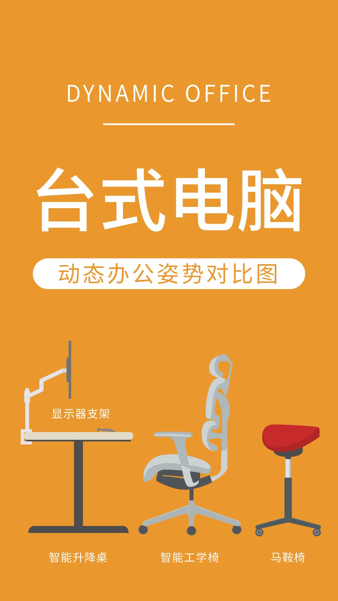 以上是台式电脑正确的办公姿势 借助各种人体工程学办公家具 笔记本电脑和台式电脑的办公姿势 在本质上是一致的 尤其提醒您的是 要注意每隔一时间进行休息 舒展身体 自由切换坐式办公和站式办公(骑马式办公) 减少部分肌肉和骨骼受到的长期劳损 动态办公维护身体健康!