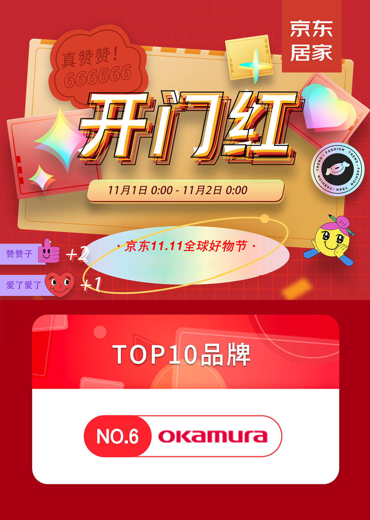 2020年11月1日,京东11.11全球好物节“京东居家”榜单中,Okmaura杀入TOP10品牌,名列第6位。