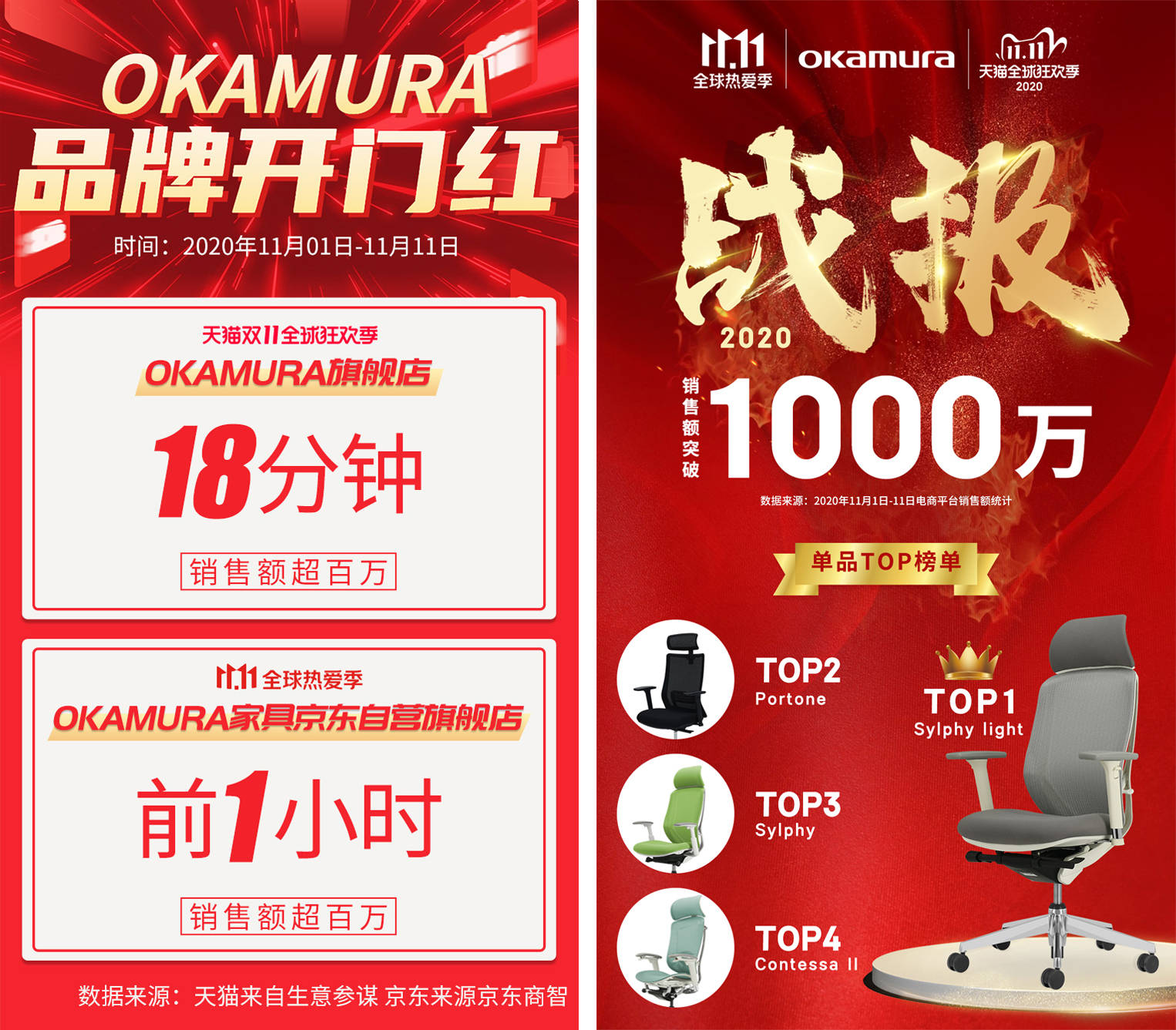 2020年双11狂欢,Okamura奥卡姆拉斩获千万元销售佳绩!